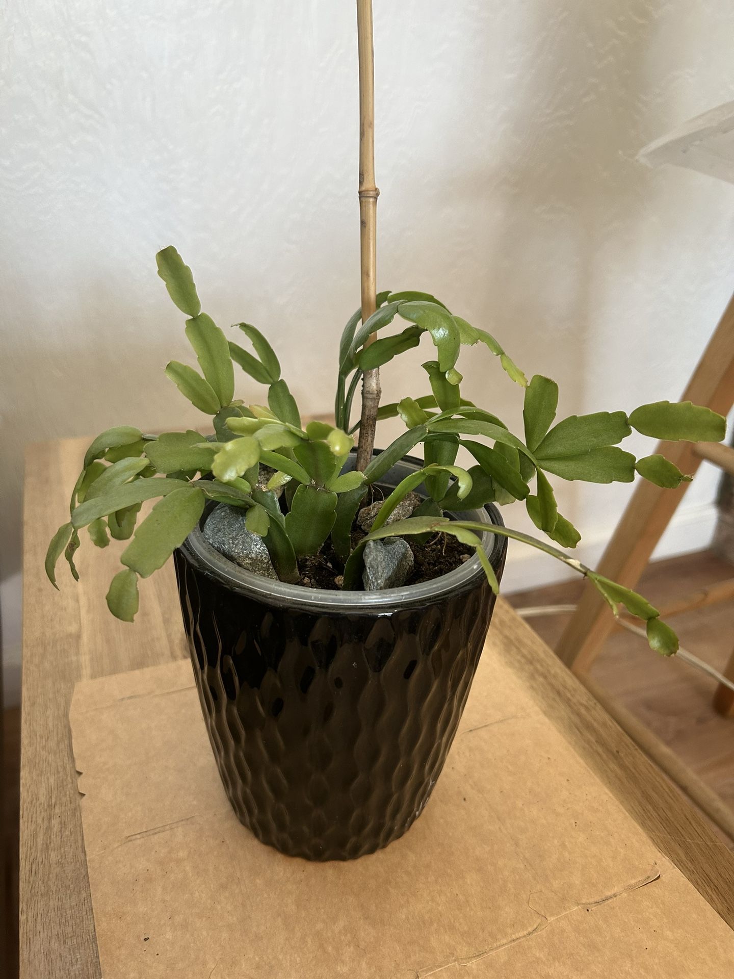 Blooms pink flowers like the last picture. $10 without black planter. $15 including ceramic black planter.