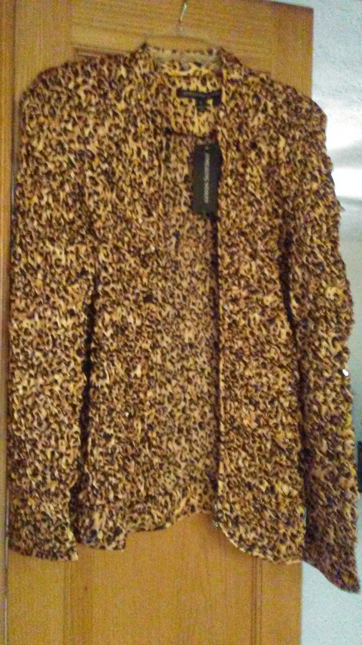colors black,teal,Grey,animal print. New perfect condition. $30.00 each I have 4 jackets they are the pucker material very stylish! Colors I have animal print, teal blue, black and gray. They have sequins for sparkly look. Very pretty!