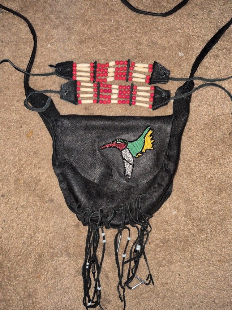 2 native American bracelets and pouch