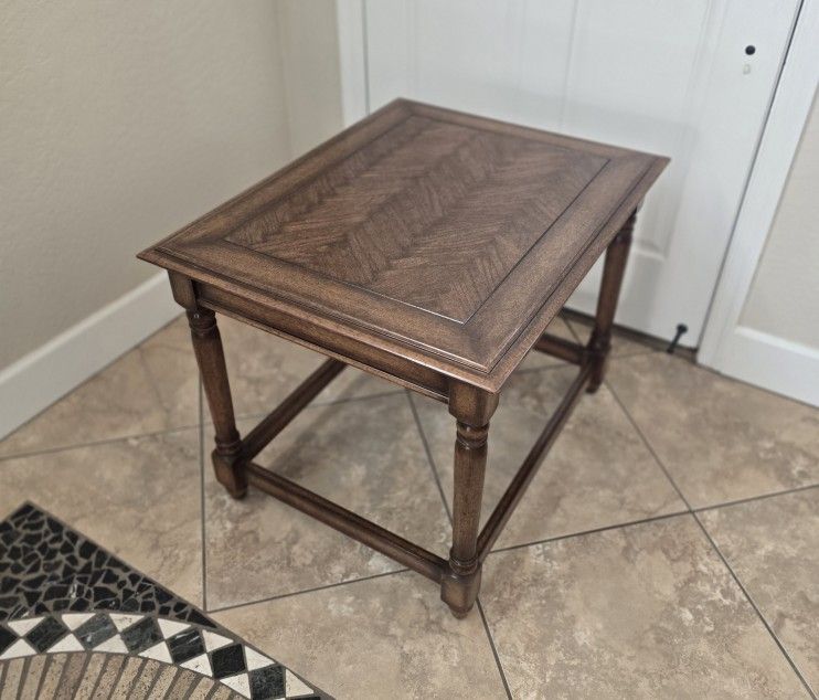 Gorgeous wood end table. Has a pretty patterned top and turned legs. Good for living room or next to a bed. 29"×23"×22" tall. Pick up in surprise close to 183rd and greenway.