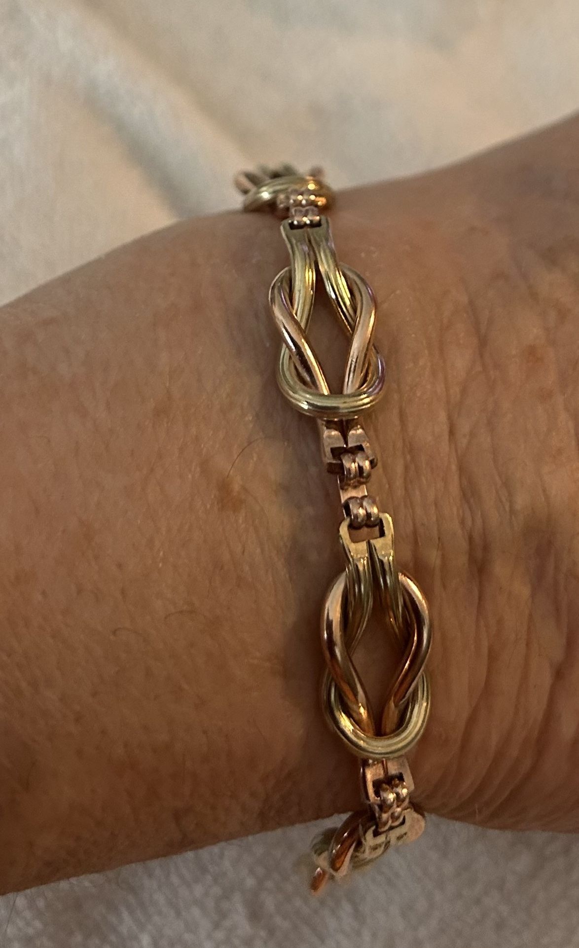 Here are two really beautiful 12 karat gold filled bracelets The first picture is from AMC O (with pearls) The second picture is not marked You are buying both bracelets The marking "1/20 12K GF" means the item is gold-filled, with a 12-karat gold layer bonded to a base metal that makes up exactly 1/20th (5%) of its total weight. Because 12K is 50% pure gold, the total piece is only 2.5% pure gold by weight, or 1/40th.