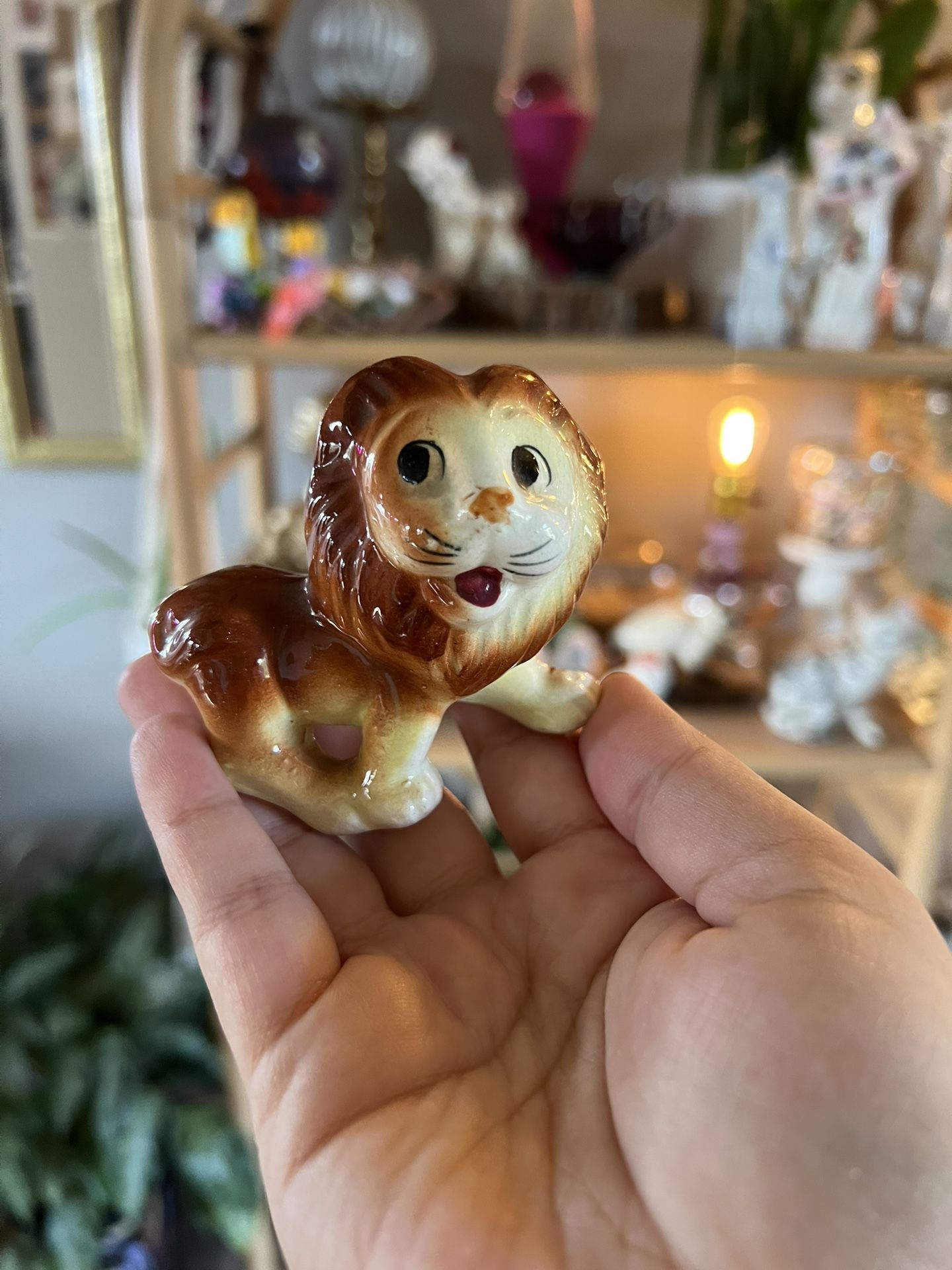 Tiny vintage lion figurine Ceramic In good condition Very small