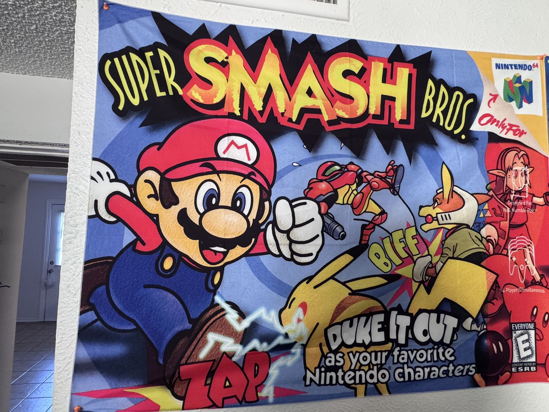 This awesome OG super smash bros banner will bring some nostalgia to old gamers! This awesome banner is great for video game stores video game rooms or simply collecting!