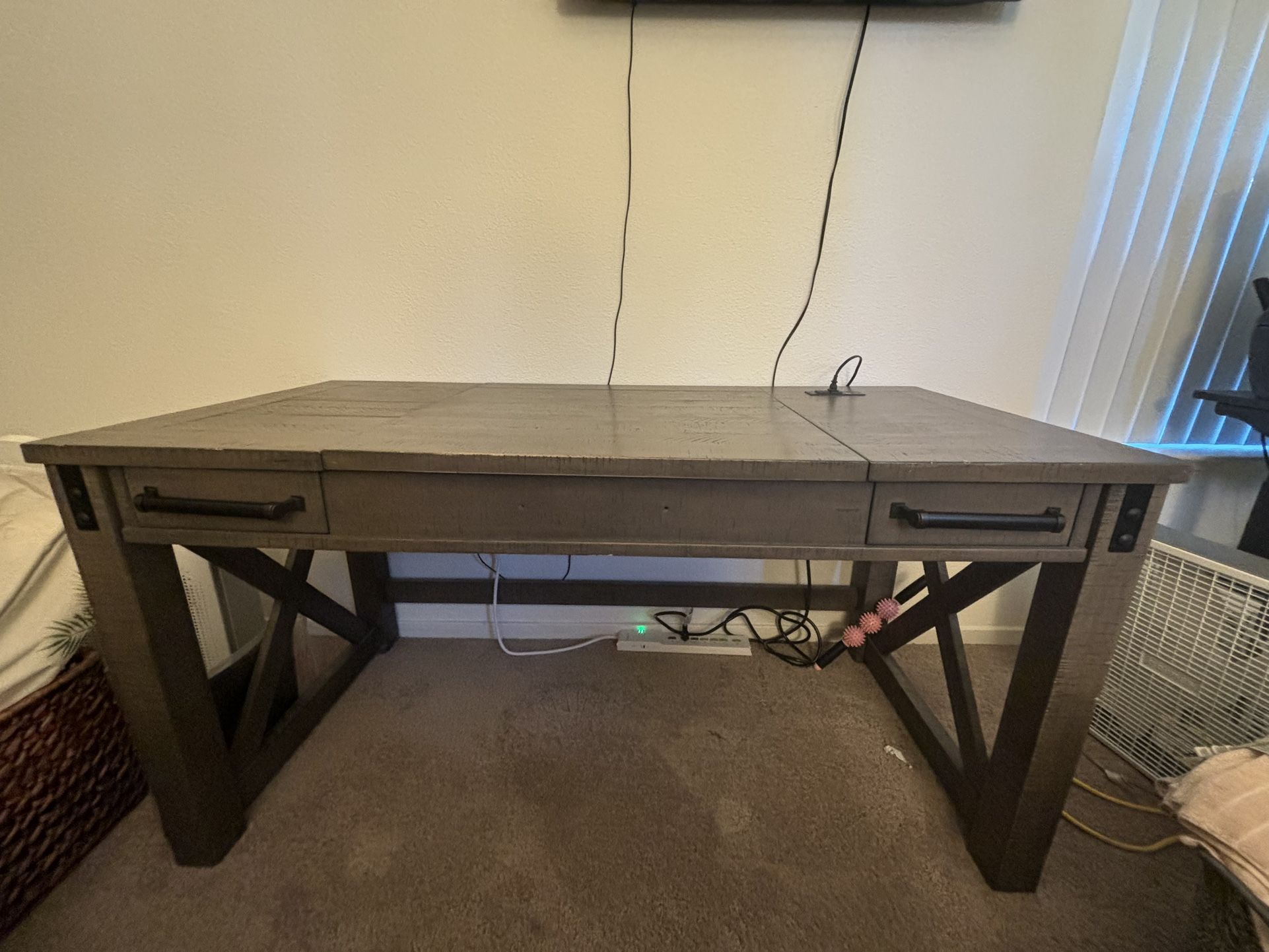 Ashley Furniture Desk Gently Used Solid and stylish desk with normal wear and tear, perfect for home office or study space. Dimensions: 59.5” W x 28” L x 30.5” H Sturdy and spacious with a classic design. Priced to sell!