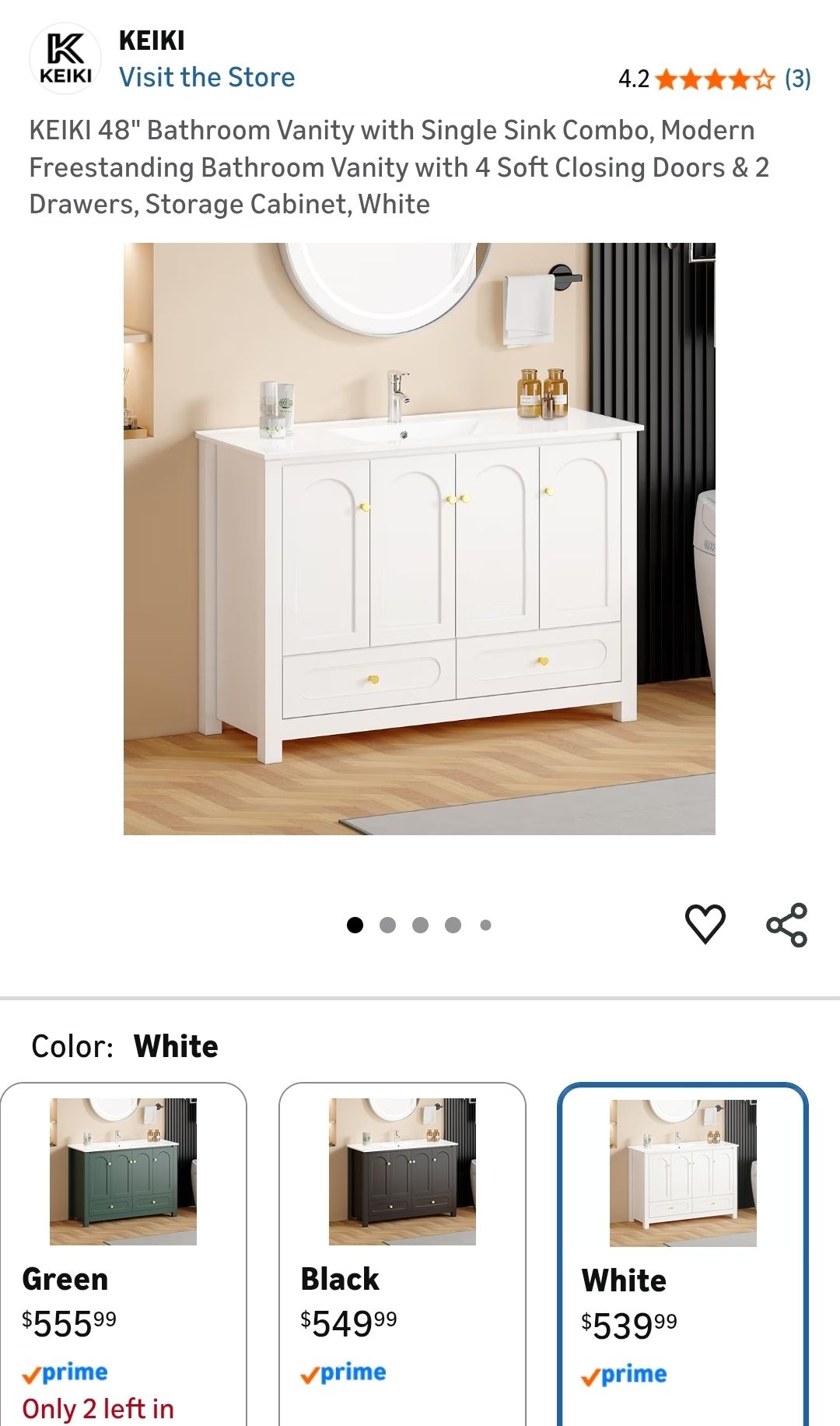 Brand New Factory Sealed in the Box 📦 Retails at $550 not including tax KEIKI 48" Bathroom Vanity with Single Sink Combo, Modern Freestanding Bathroom Vanity with 4 Soft Closing Doors & 2 Drawers, Storage Cabinet, White