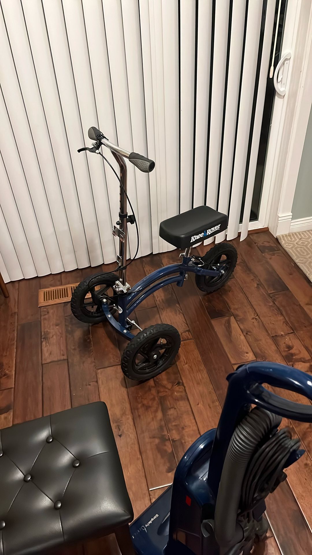 All terrain knee rover High quality knee scooter, like new Used a few times and no longer need Save hundred Great for sidewalks grass pebbles Comfortable and adjusts for all ages Compact for trunk