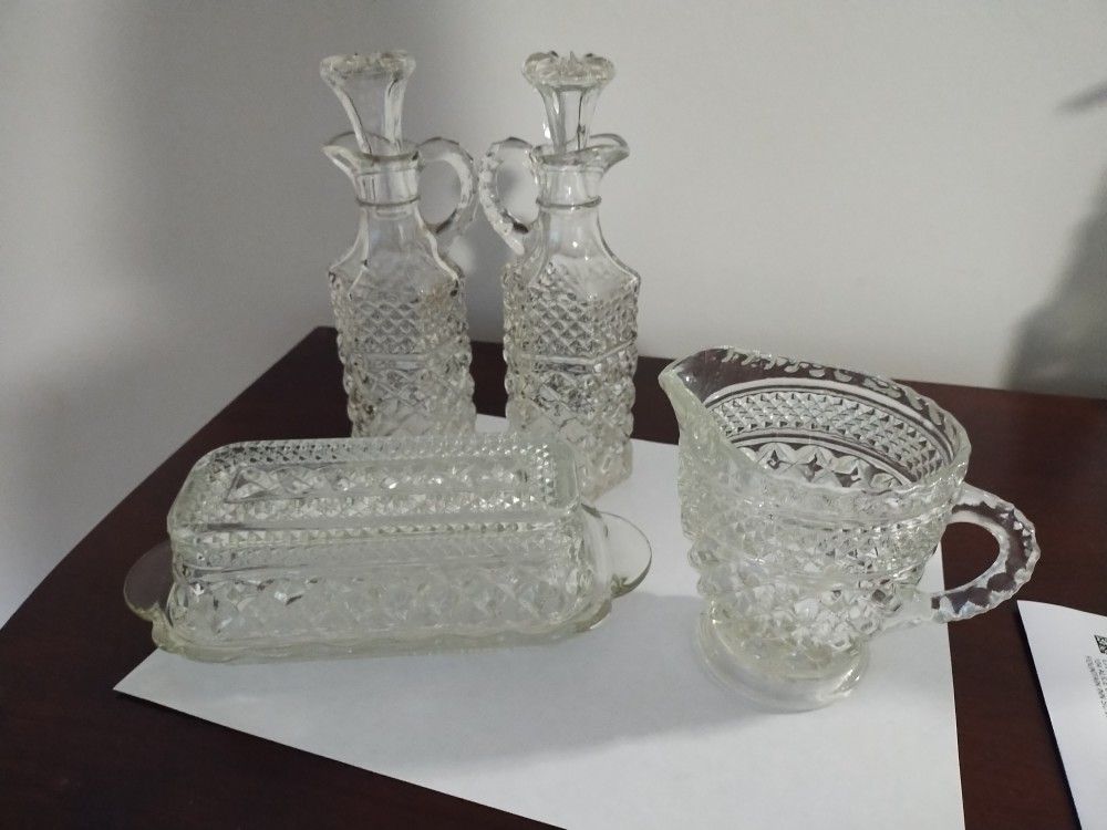 Vintage Anchor Hocking Creamer, Butter And Oil And Vinegar