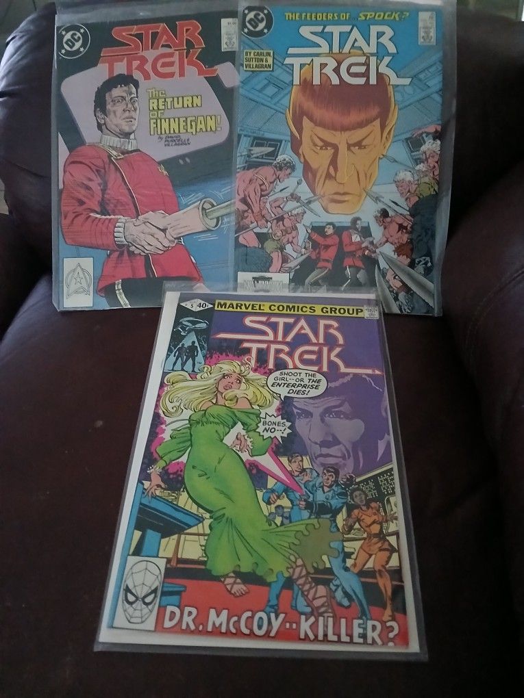 3 DC MARVEL STAR TREK COMIC BOOKS, PLASTIC COVERED, GOOD CONDITION
