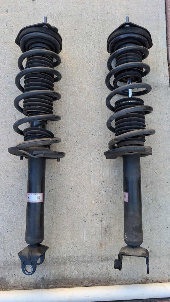 Pulled from 2014 Q50 base/premium with 120k miles. Fronta not listed but also available Nissan Infiniti Factory Original Individual Rear Shock Absorber Rear Coil Spring Complete Rear Shock/Spring Assembly Upper Rear Shock Mount Lower Spring Seat Upper Spring Seat Rear Jounce Bumper Shocks Struts E6210-4GAOC 55020-4GAOA E6A105CC1KNW 55320-1MA1A 55310-1MAOA 55050-1MA0A 55240-1MA1B 01(contact info removed)1 80497-40UOA 11298-8H303