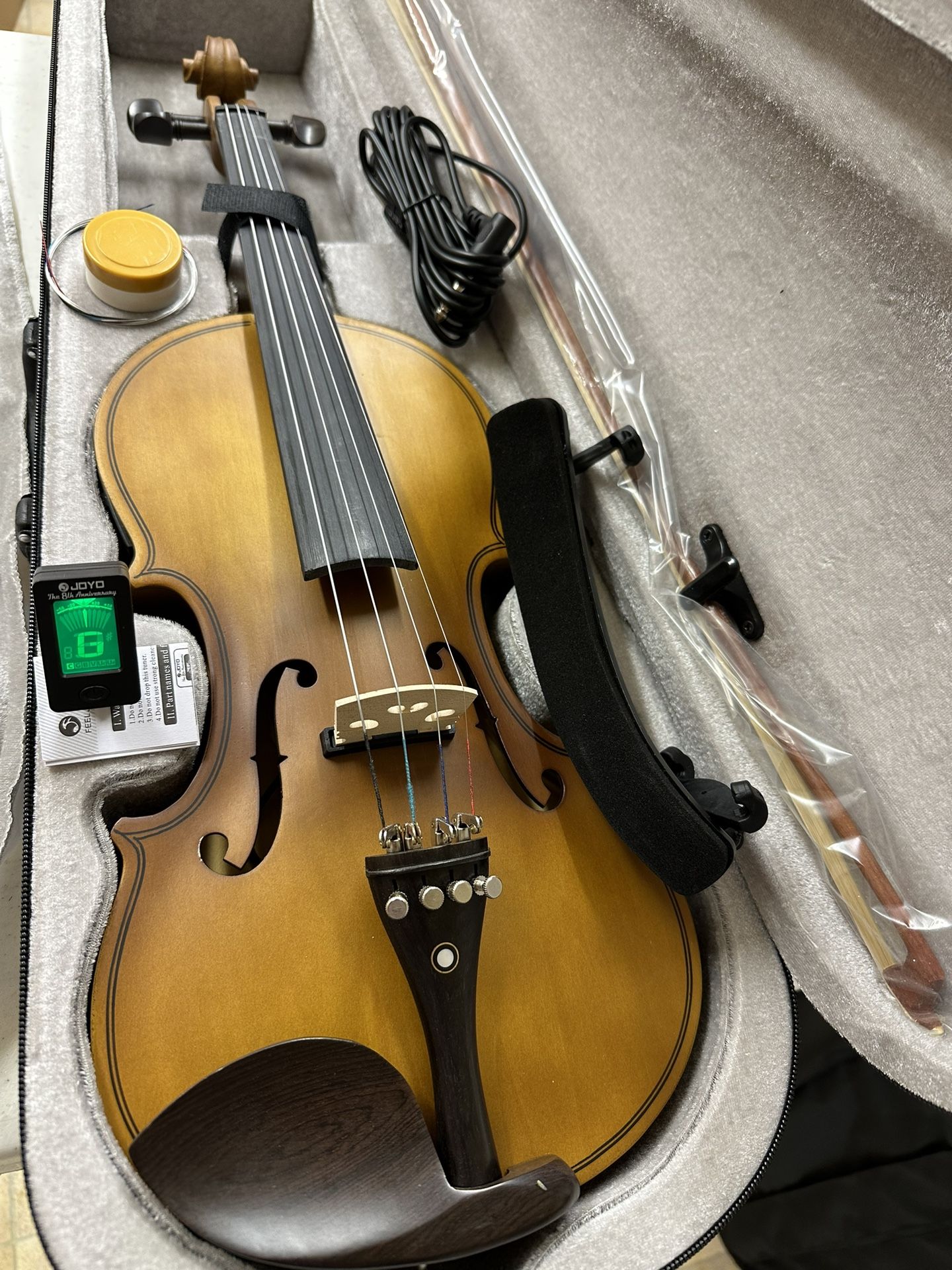4/4 Electric Acoustic Violin with New Bow, Digital Tuner, Shoulder Rest, Extra Strings, Cable $160 Firm