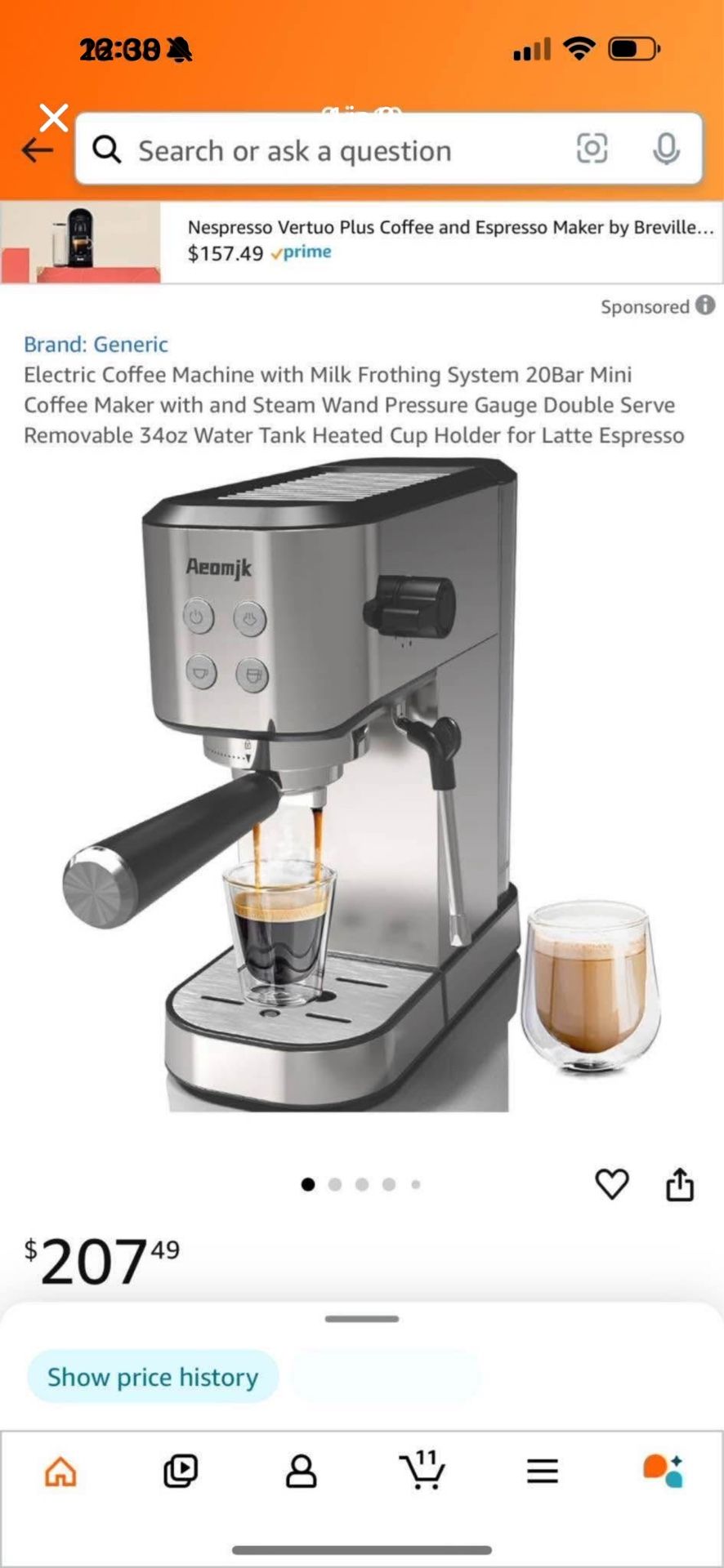 Electric Coffee Machine with Milk Frothing System 20Bar Mini Coffee Maker with and Steam Wand Pressure Gauge Double Serve Removable 34oz Water Tank He