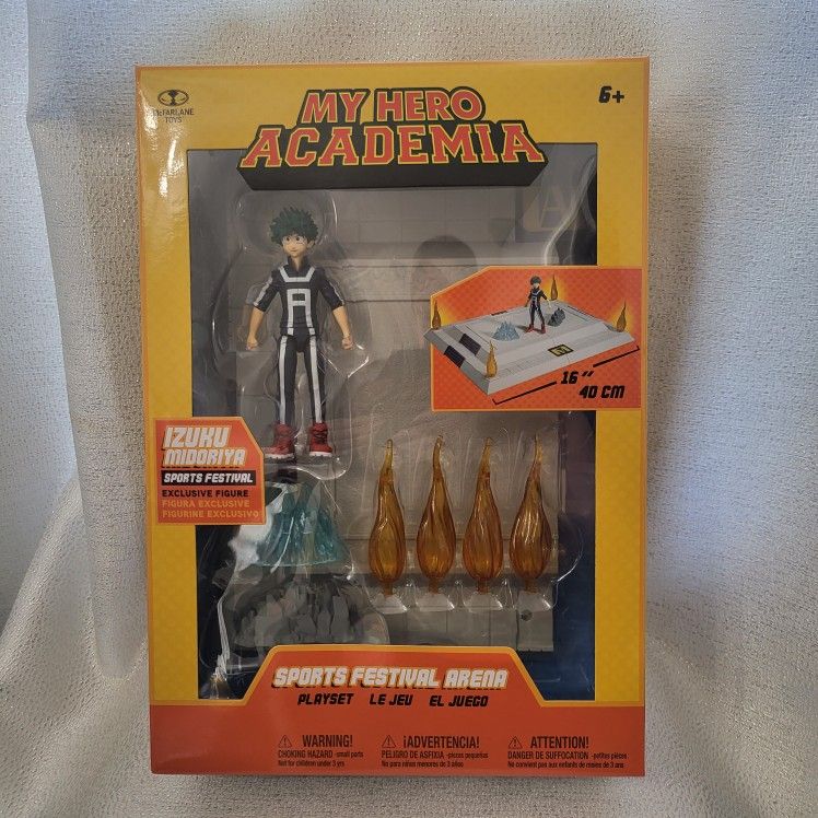 New in package My Hero Academia Sports Festival Arena w/ Exclusive Figure Izuku Midoriya Figure measures 5.5" H Sports Arena measures 16" W MHA, Anime, My Hero Academia, Naruto, One Piece, Bakugo, Todoroki, All might, Ochaco Uraraka, Tokiyami.