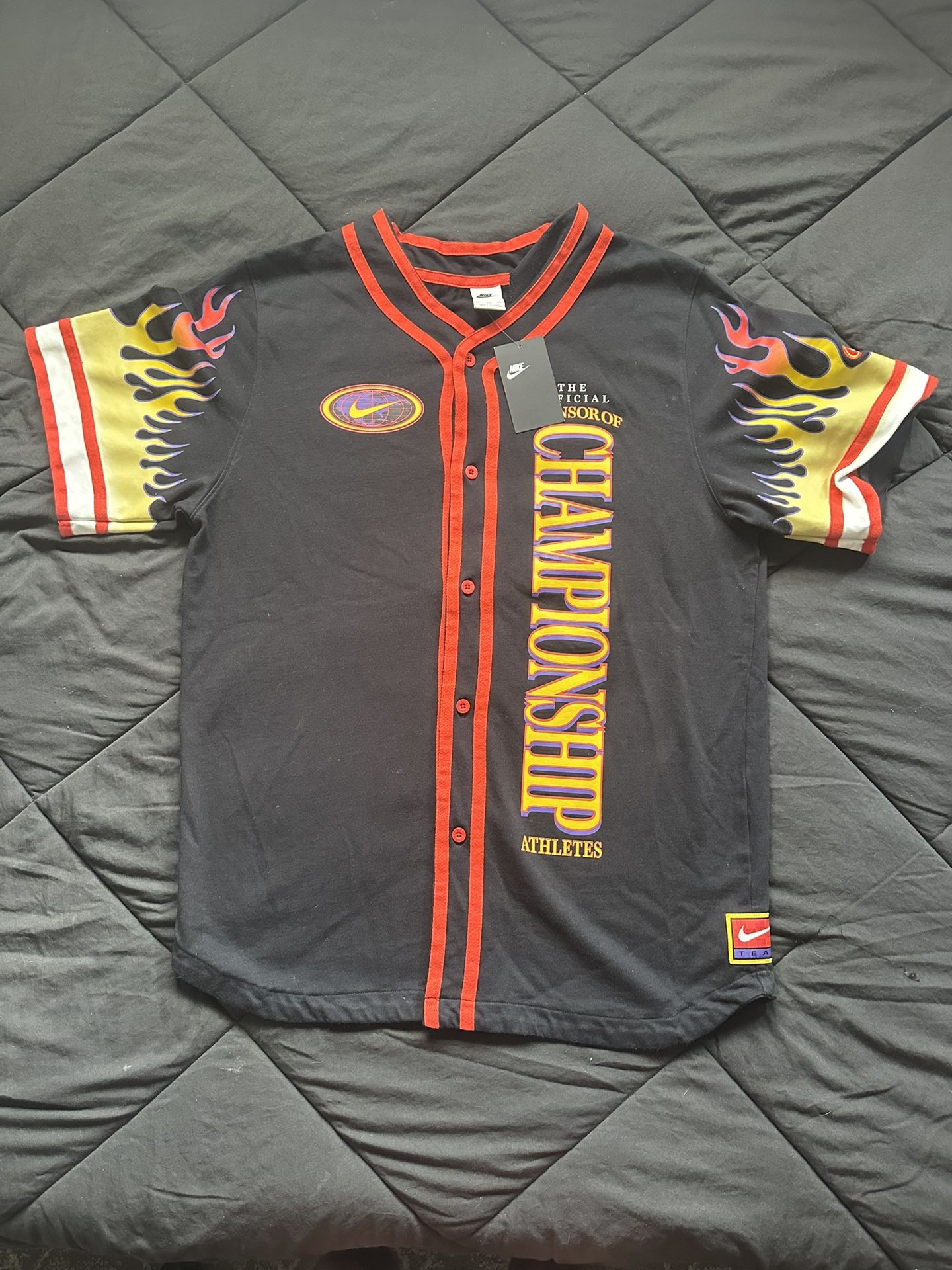 Nike Sponsor Of Championship Athletes Flames Baseball Jersey Men’s size xxl new never worn with tags $30 Ignore: Nike flame jersey , Nike jersey , Nike hoodie , Nike button up , Nike sweater , Nike sweats , Nike socks , Nike hat , Nike shoes , men’s Nike size 2xl , 2xl Nike jersey , 2xl Nike shirt , 2xl Nike hoodie , Nike clothing , Nike apparel , Nike , men’s clothing , men’s 2xl shirt , men’s 2xl hoodie , men’s 2xl , men’s pant