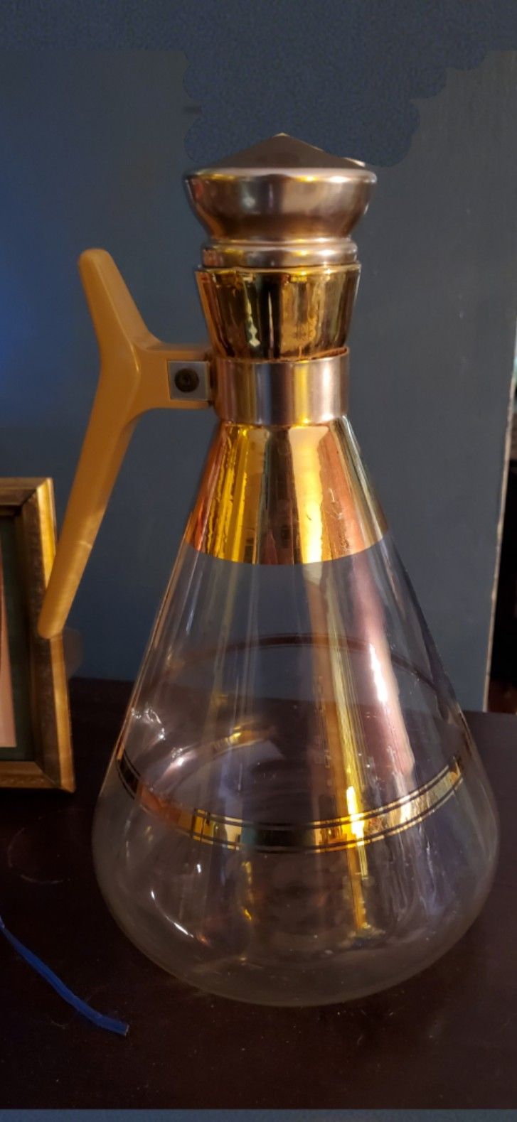 Retro glass carafe with cork stopper. Size: 11 1/2" in height approx. 6" in diameter.