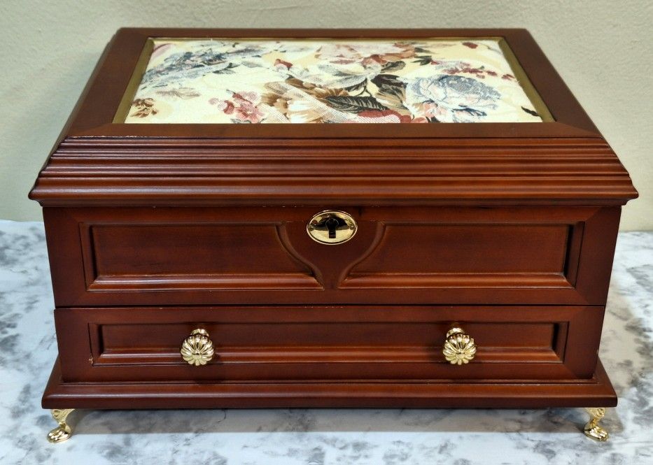 Victorian Style Wooden Jewelry Box for Sale in Newark/New Castle area. Beautiful Victorian-style wooden jewelry box with a rich cherry finish and gold-tone hardware. It features a mirrored lid, a removable velvet-lined tray, and multiple compartments for rings, earrings, and other treasures. Size: 8" tall x 13.5" wide x 10" deep The lock works but I don’t have the key — it’s already unlocked and fully functional. Minor cosmetic wear from age but overall in great condition. Perfect for storing your jewelry, keepsakes, or even as a decorative display piece. Contact me for more info.