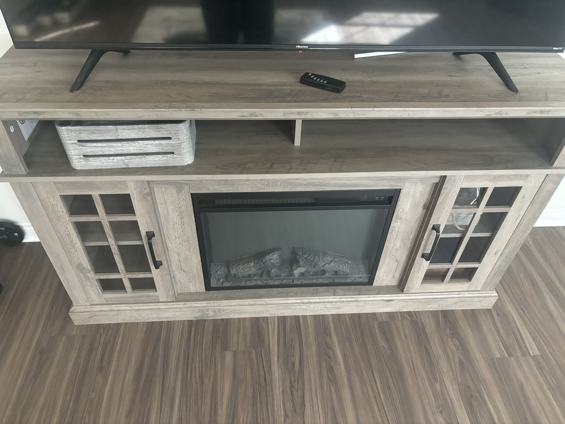 tv stand / entertainment center with remote control fire place with cabinets as well very sturdy