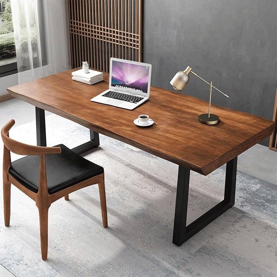 Modern Minimalist Solid Wood Office Desk with Metal Base Easy to Assemble Durable Writing Table Dining Table Computer Desk Multiple Ideal for Living R