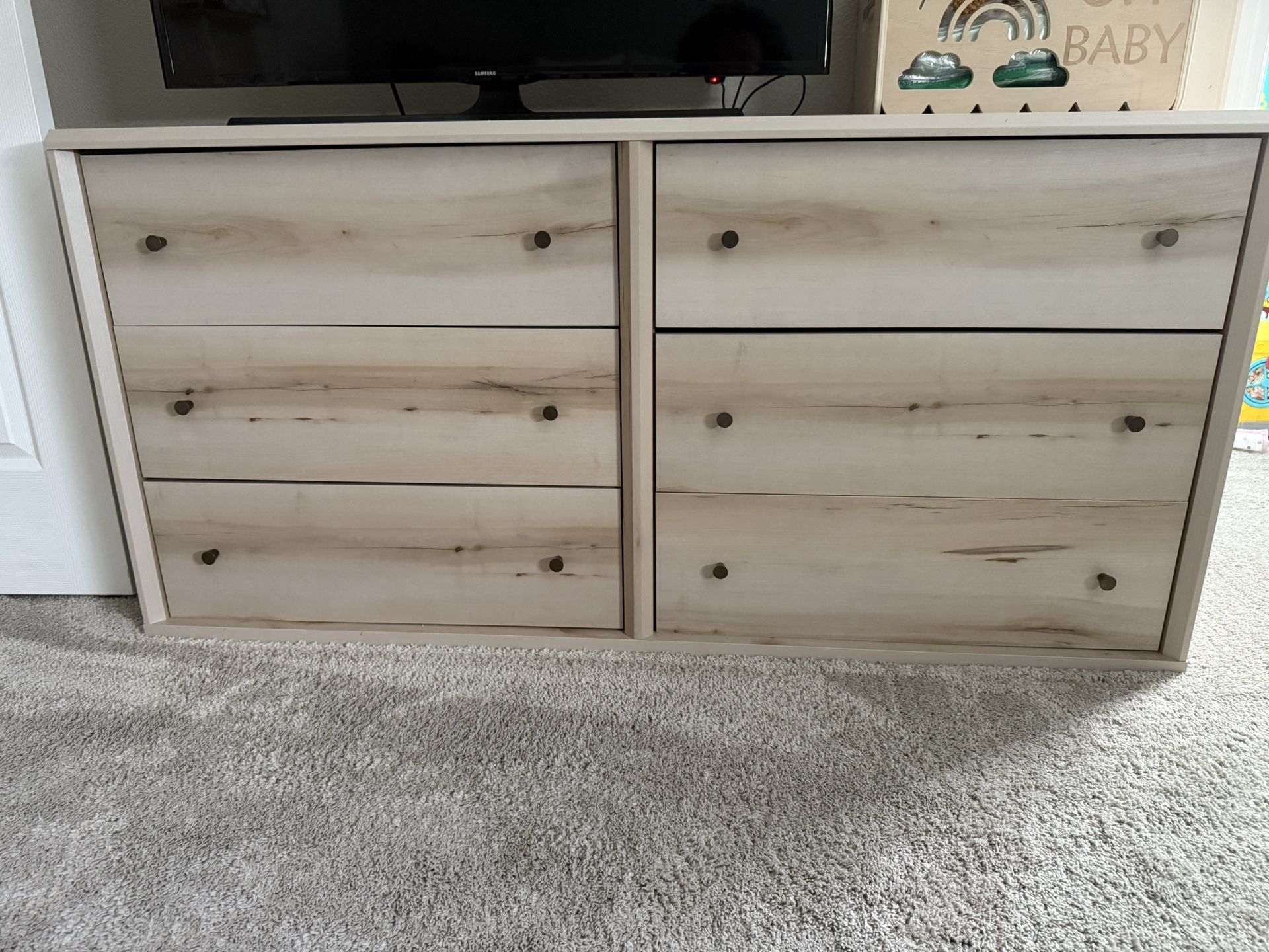 Modern light wood dresser with clean lines and black knobs. Six spacious drawers provide plenty of storage for clothes, linens, or baby items. Excellent condition β no scratches, dents, or stains. π Approx. Dimensions: 60β W x 16β D x 30β H β Smoke-free, pet-free home