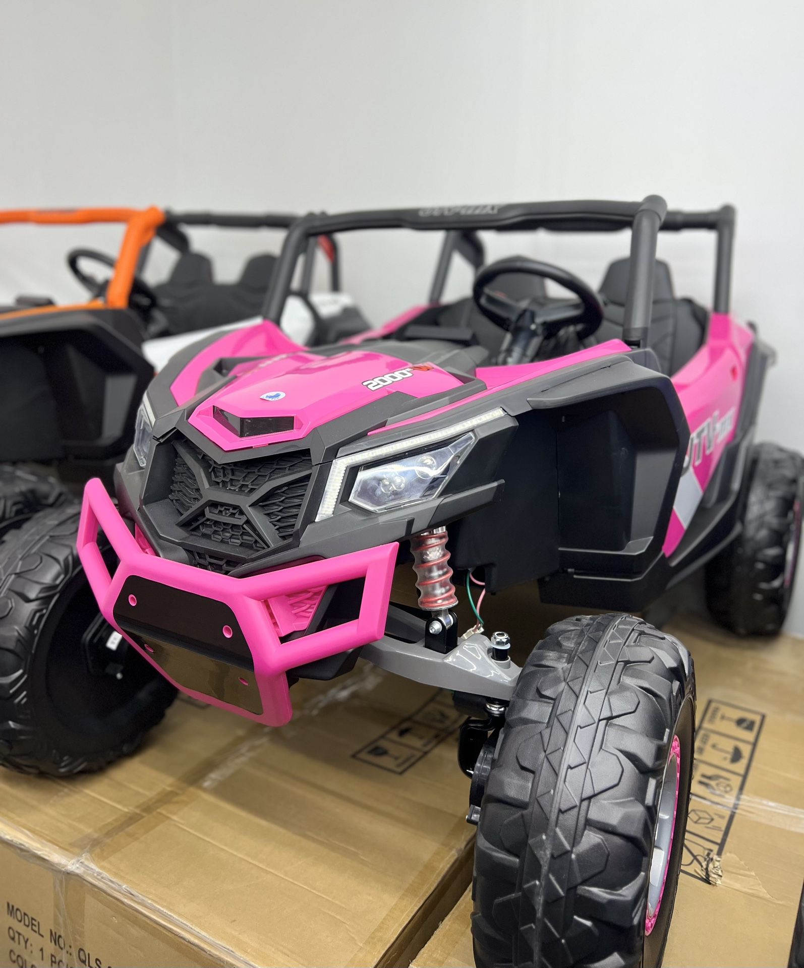 24V Screen Remote/Parental Control Self control 2 seater Leather quilted seats Rubber tires Button Start