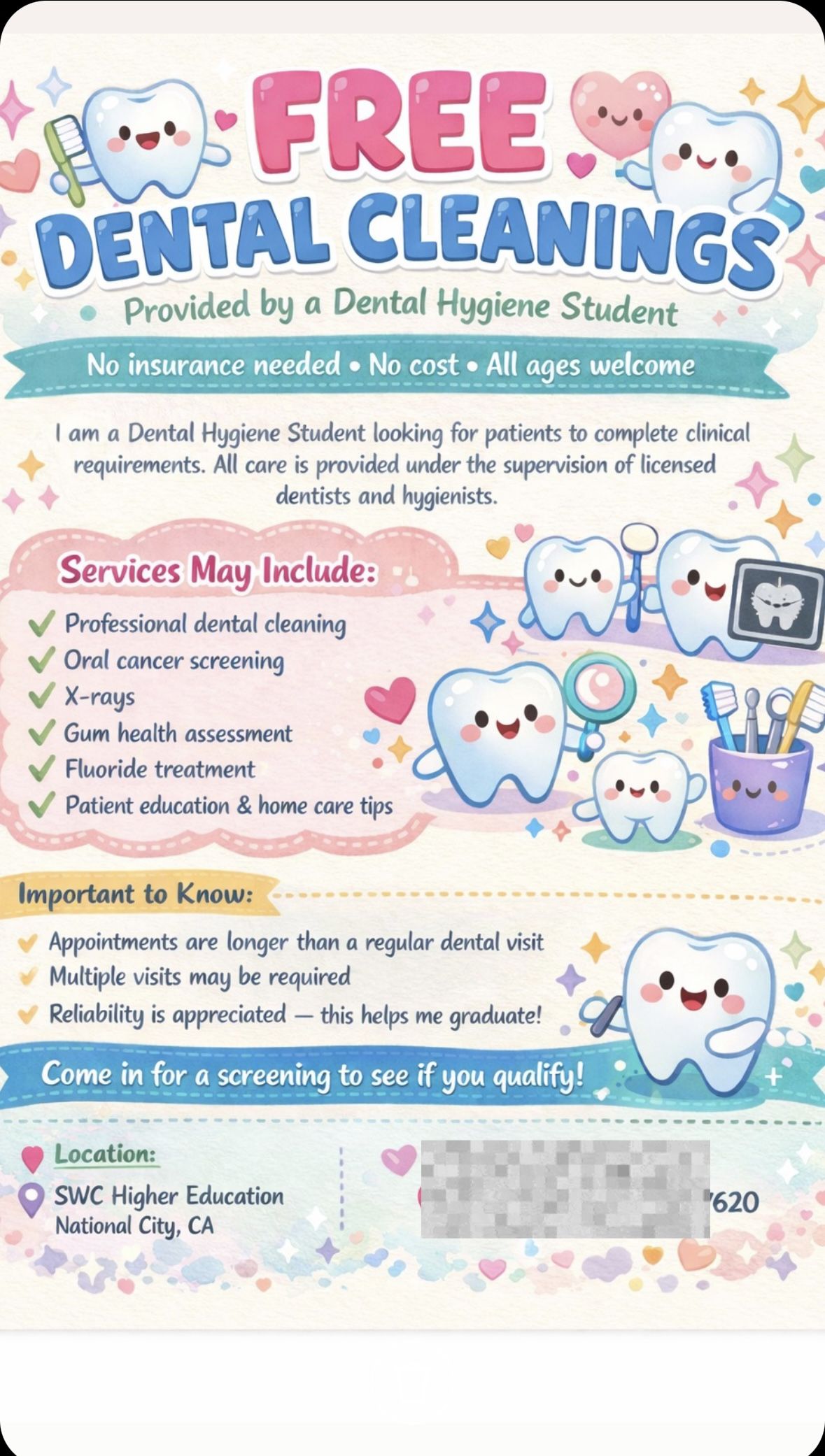 Important to Know: • Appointments are longer than a regular dental visit • Multiple visits may be required • Reliability is appreciated — this helps me graduate! Message me for further information 🫶🏻