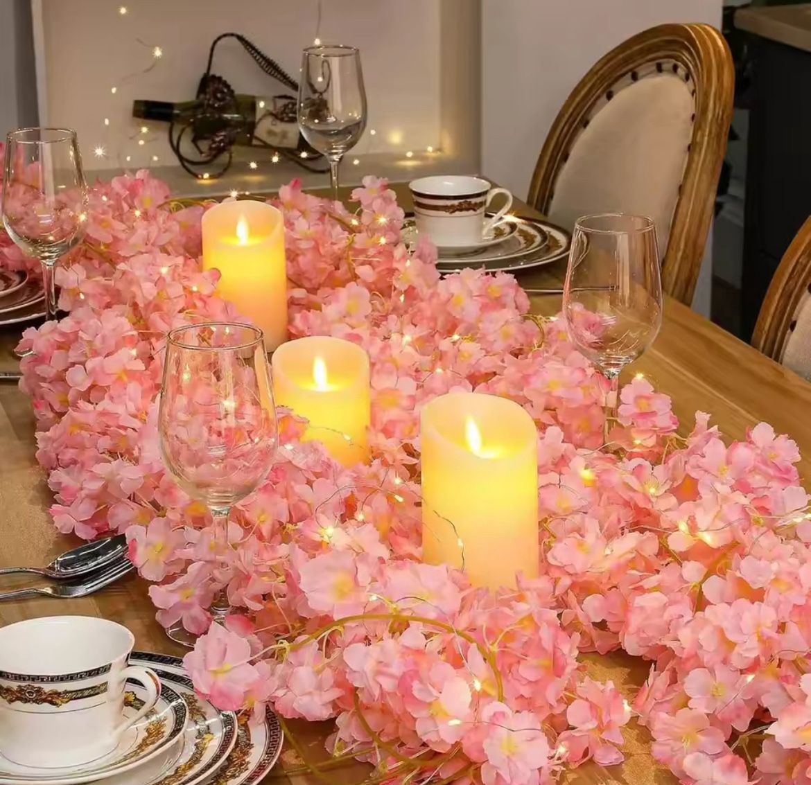 2M 20LEDs Cherry Blossom String Light Garland Artificial Flower Vines Fairy Lights for Bedroom Wedding Party Holiday Decoration