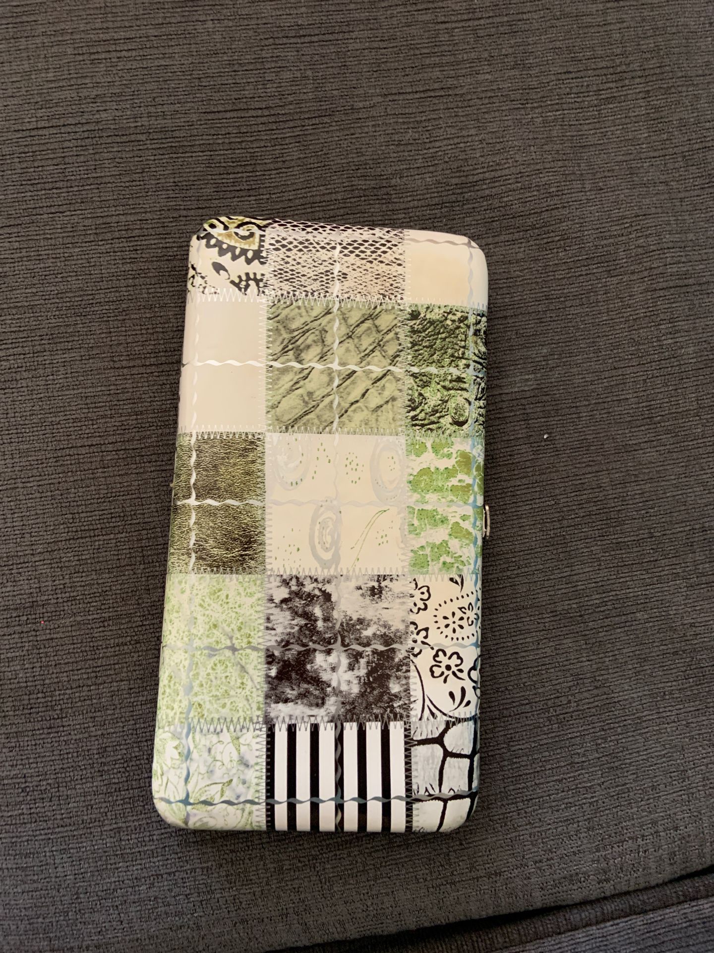 Snap clutch wallet, outside plastic/wipe able. In good condition.