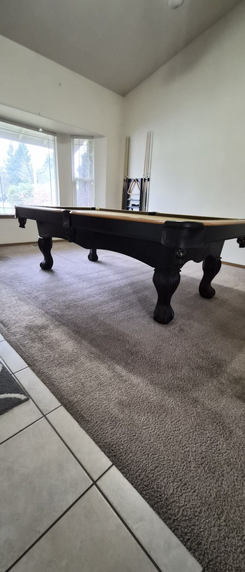 4x8 Sears/Sportcraft full size pool table. 1" high density particle board top. Table shoots nice but I'm moving and can't take it with. Spec sheet in the pictures