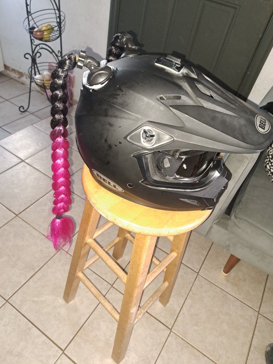 There is some glue where the pigtails are glued but the helmet is in great condition and it comes with the 100% riding black googles