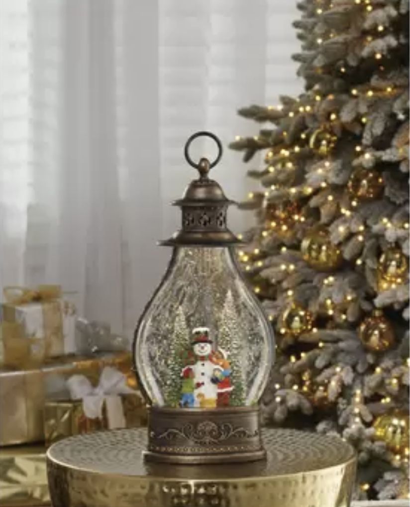 This unique holiday lantern will captivate all who view the internal scene's exquisite details. Swirling vivid glitter enhances the magical effect. Features: Hand-crafted; Hand painted; Charming detail; Illuminated; Including timer (6h on/ 18h off); Water Spinning; Light up. Water globe with glitter. Suitable for indoor use. Dimensions: 17 cm x 8 cm x 35.4 cm Features: Snowman