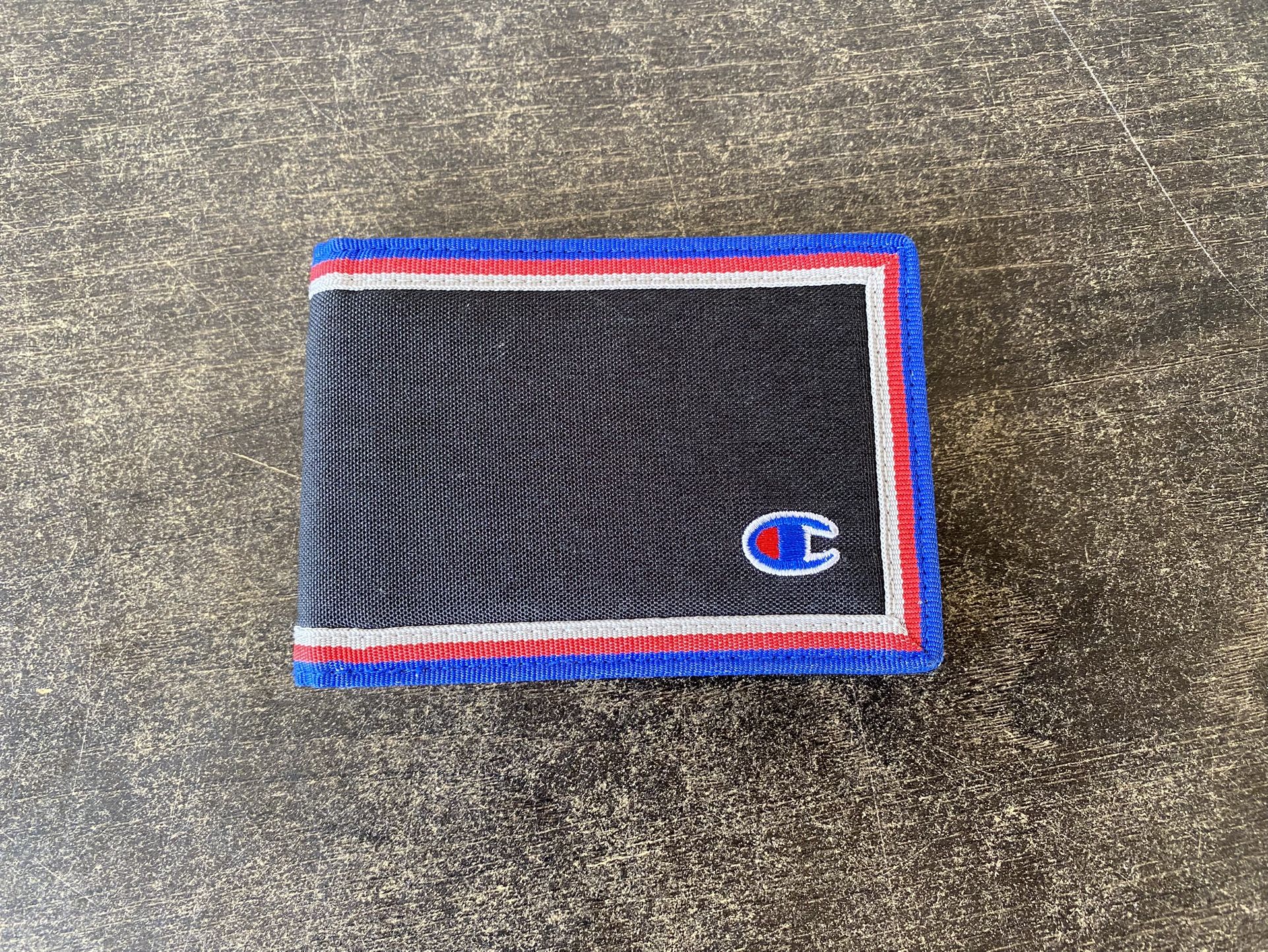 Mens CHAMPION Black With Red Blue Border Bifold Wallet