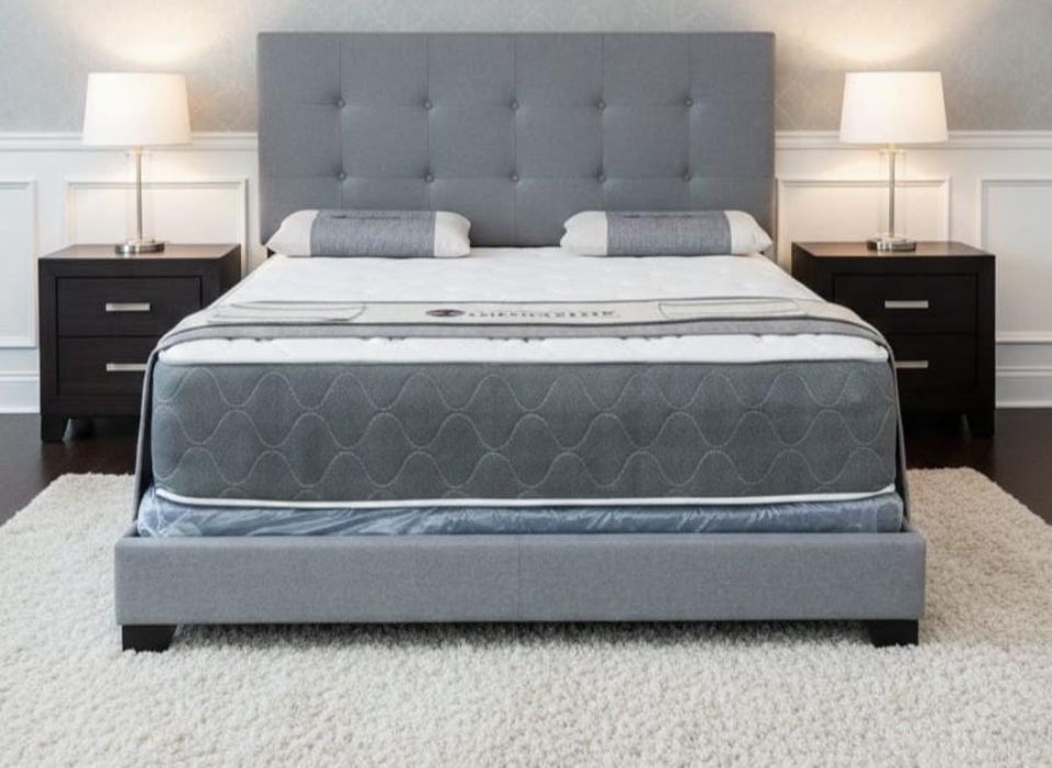 BRAND NEW QUEEN SIZE GRAY BED FRAME WITH NEW MATTRESS SET/FAST DELI