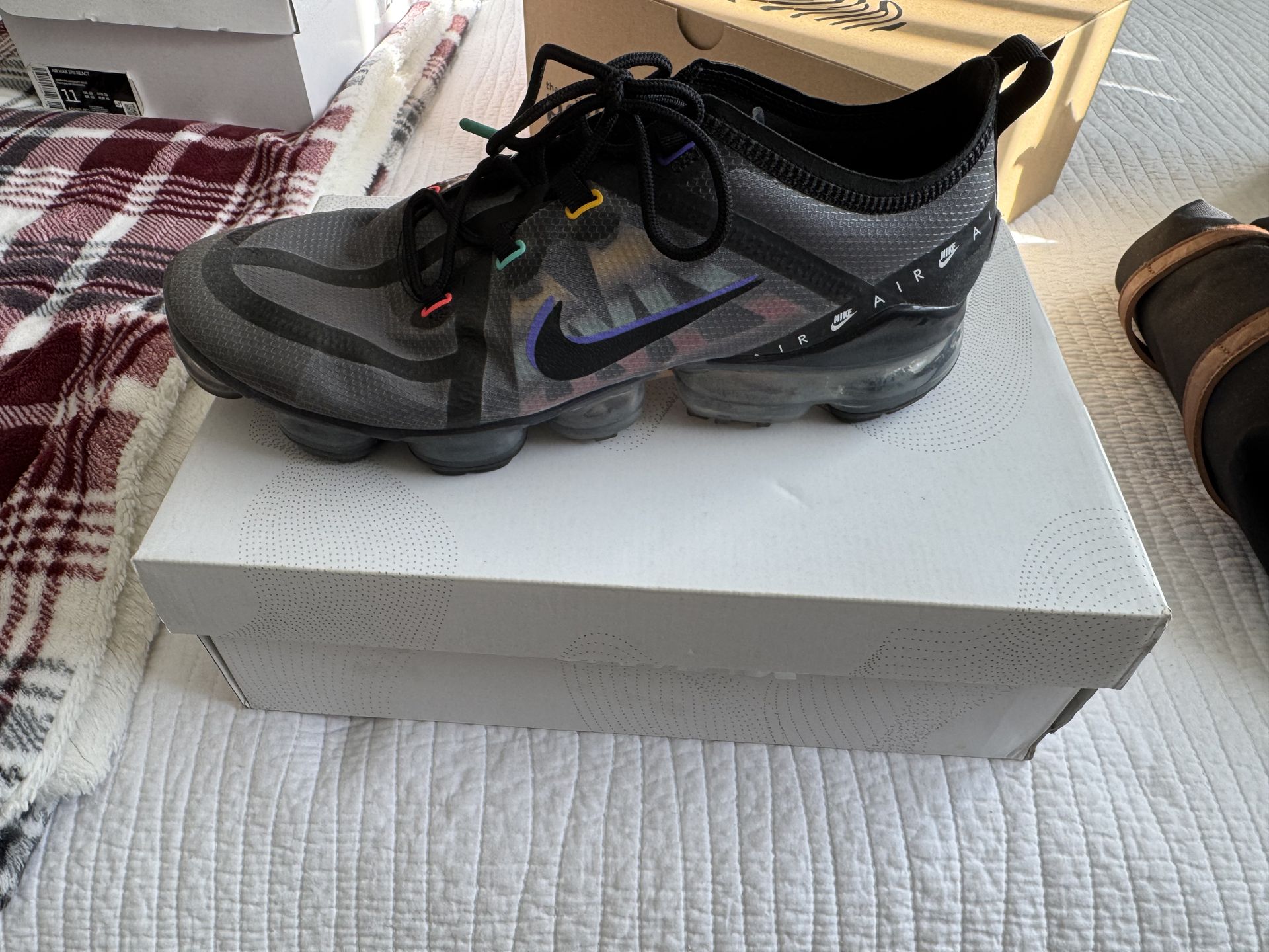 I have these Nike Air VaporMax 2019 SE 'Black Multi' for sale in basically great condition only wore them once! Size 11.5 basically size 11 let me know if interested!!