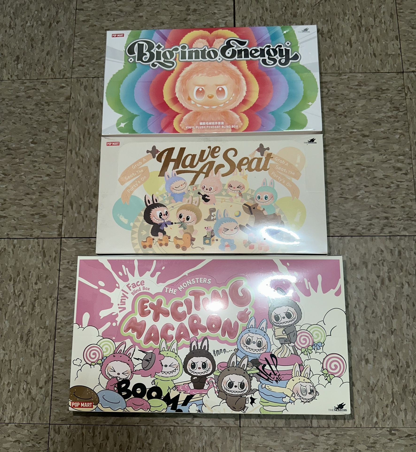 Brand new labubu full set Full macaron set Full have a seat set Full big into energy set $120 each Receipt available