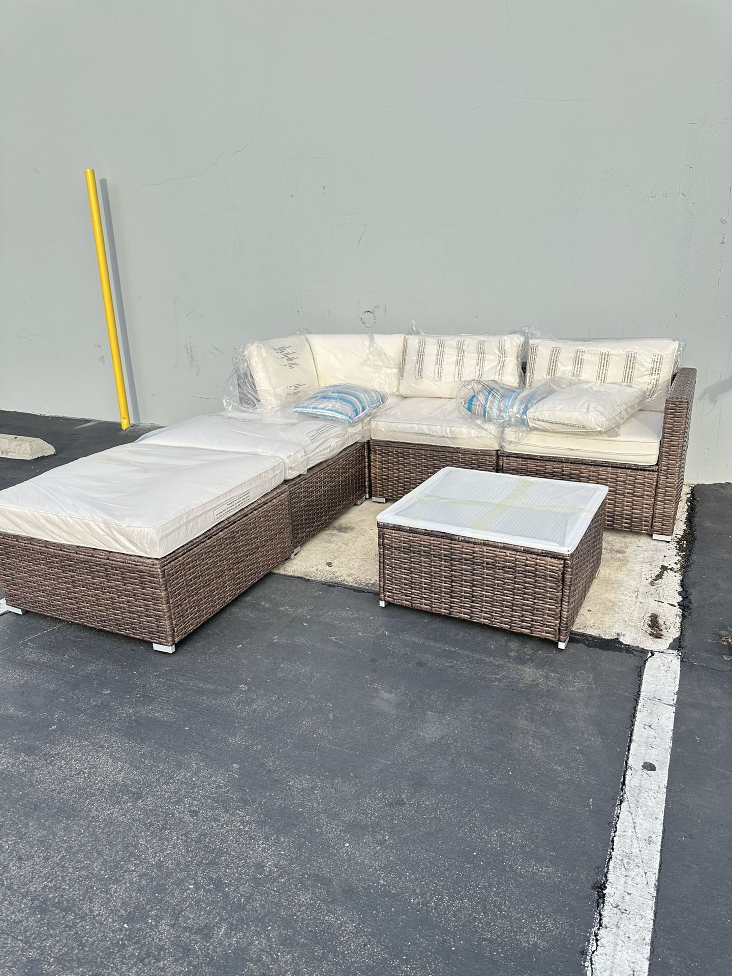 6pc Outdoor Sectional Wicker Patio Set