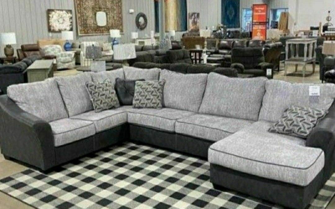 Black/Gray 3 Pieces Sectional Couch Same Day Delivery