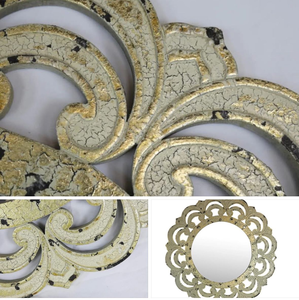 Art Deco Ivory Color Decorative Garden Mirror Wood Frame Description Ivory color decorative garden mirror in good condition Dimensions 31ʺW × 1ʺD × 31ʺH Early 21st Century Art Deco