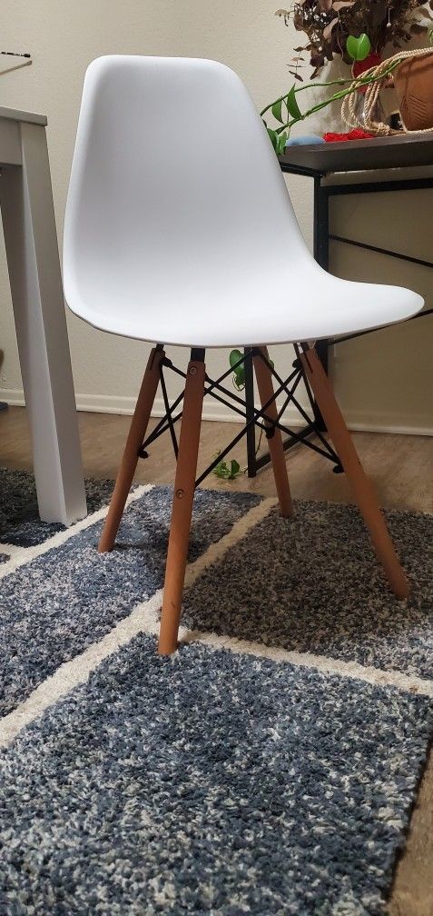 - Comfortable scoop chairs - Wood legs - Metal frame support - Plastic seat - Great condition