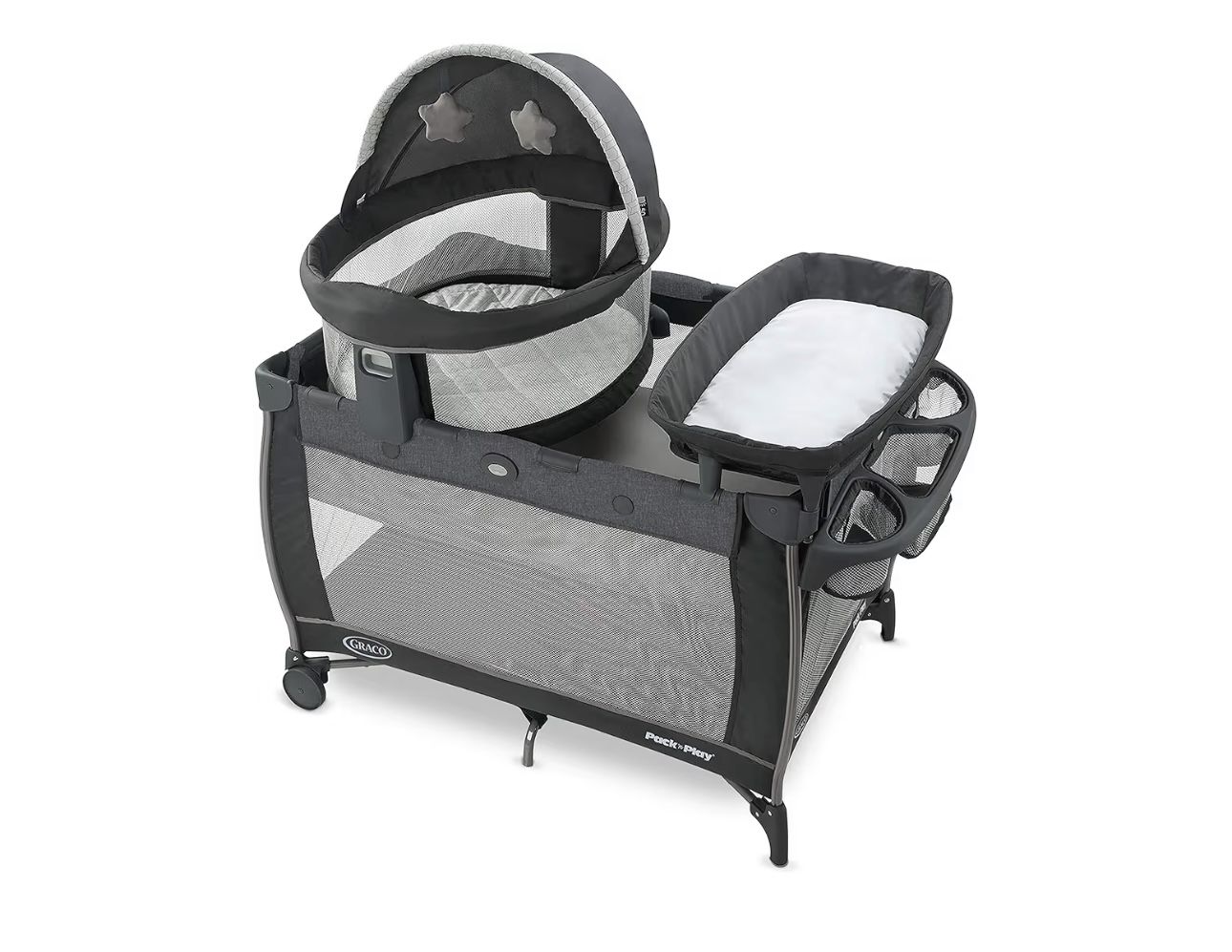 Graco Pack n Play Dome LX Playard with Baby Bassinet, Lightweight Portable Crib, Push-Button Fold Travel Crib, Redmond, Convertible