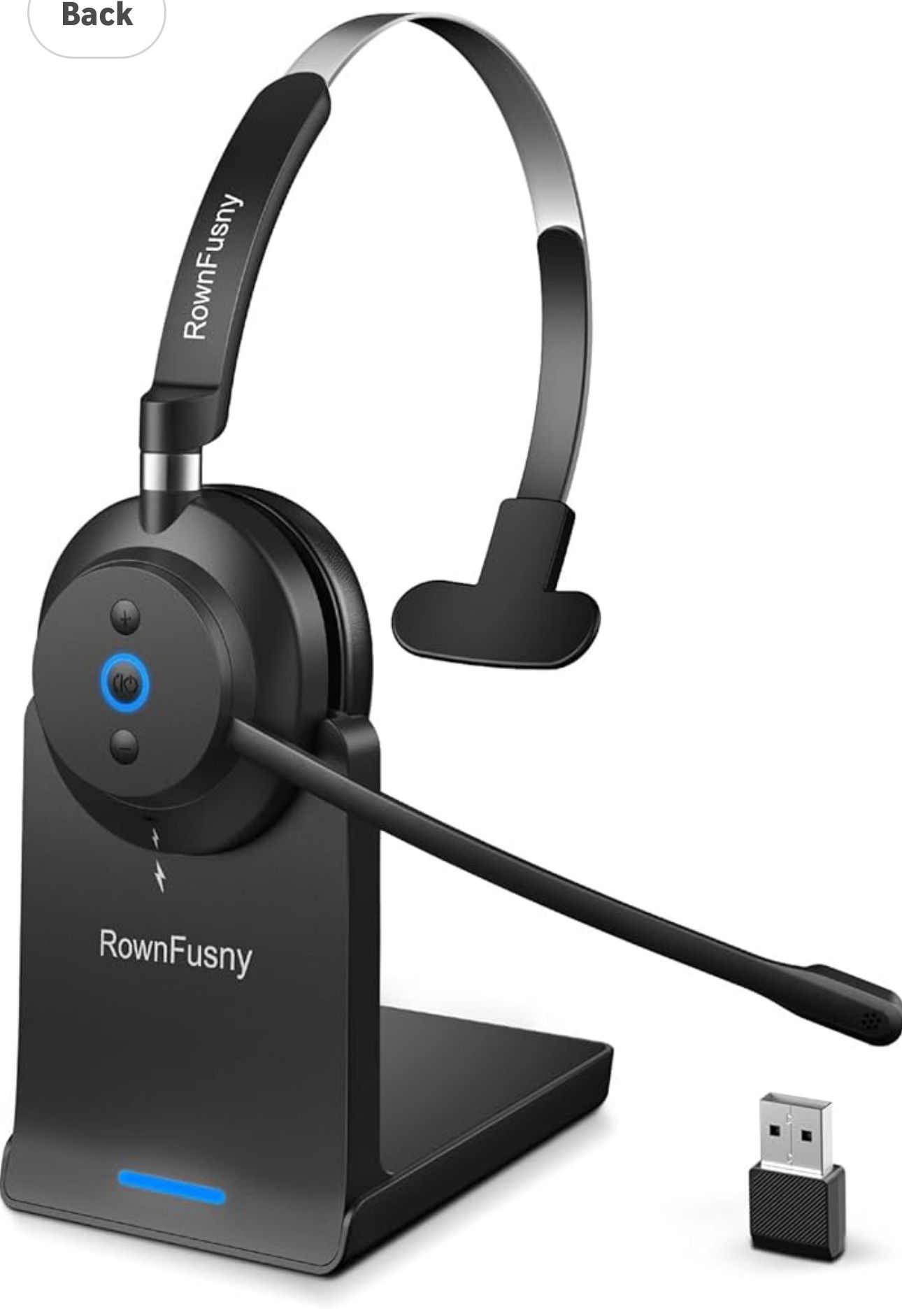 Wireless Headset with Mic for Work, Clear Sound & Comfortable & Stable Connection Computer Headset with Microphone, Bluetooth Headset with Charging Base & USB Dongle for Office Home Call Center(Black)