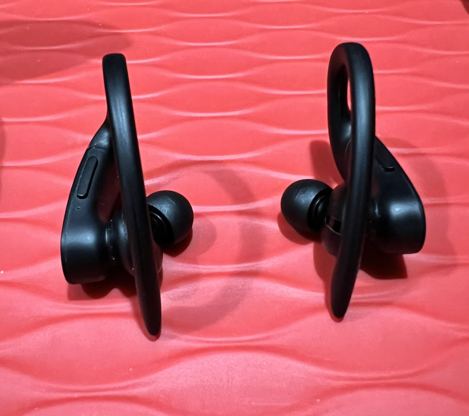 These wireless earphones are in excellent condition, with the the original packaging and original, unused spare earbud covers all included in one sale package. The earbuds are fully functional, and provide a comfortable yet firm over-the-ear grip for hours of listening with a full charge.
