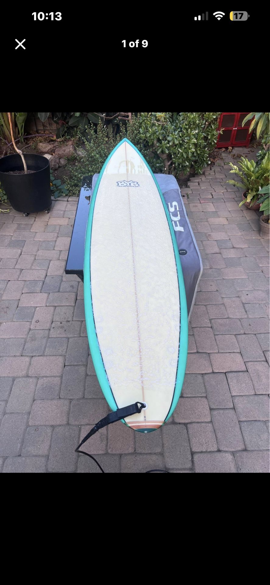 BYB surfboard shaped in Oceanside by S. Clark. Length 7’10”, 21.5” wide, approx 45L volume. Quad fin setup (fast, great down-the-line speed). This is a mid-length hybrid / step-up, not a full gun. Paddles well, holds speed, and feels great in 4–7 ft surf. Solid board for punchy beach breaks or clean point days. Condition: Overall good condition Normal pressure dents from use No major dings or structural issues Water-tight and ready to surf Great board if you want something stable with speed for better days, or a confidence board when the waves have push. open to trades for 5'9" fish, ~33L, swallow tail, twin or quad 6’10″ Mid-Length ~44L Round tail, 5-fin (thruster/quad combo)