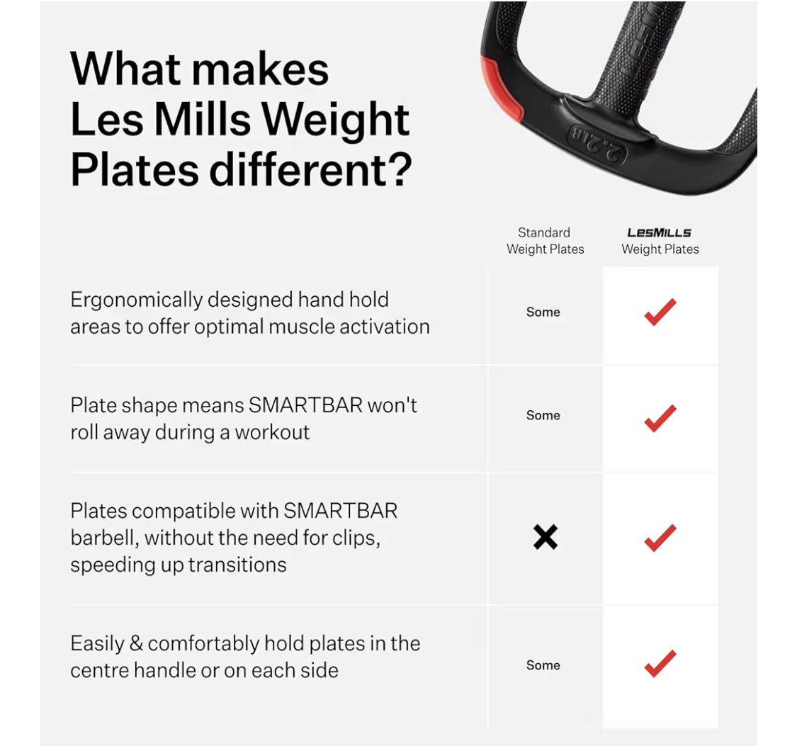 Les Mills™ Dual Purpose Ergonomic Exercise Weight Plates for Total Body Workouts