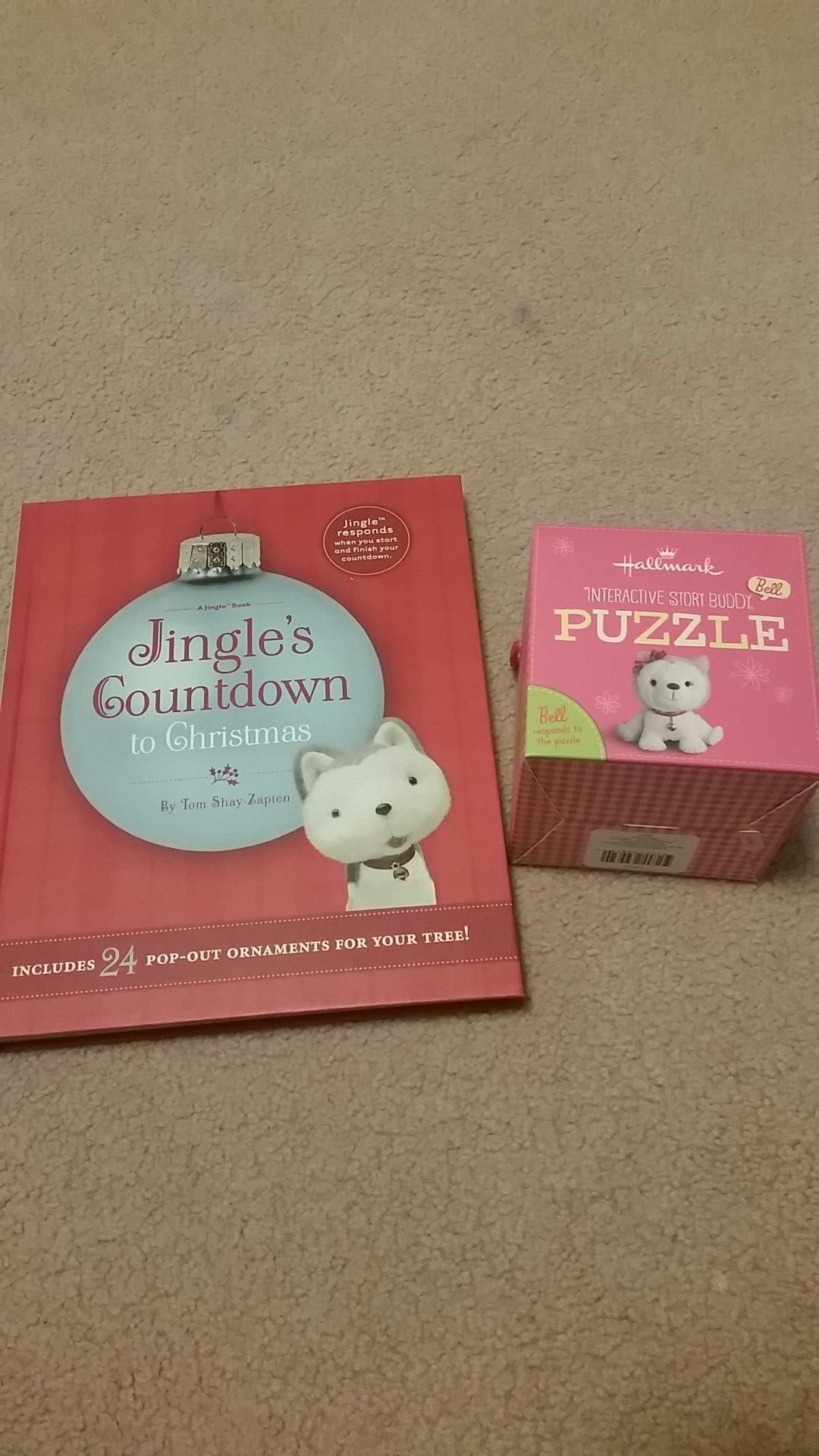 Unopened puzzle for Bell that works with the Hallmark interactive dog. But you can use it just as a puzzle. 36 pieces. Unused book with pop out ornaments. Brand new. Ornaments are on heavy cardboard and can be hung on a tree. Set usually costs 14.95 for book and $9.95 for puzzle.
