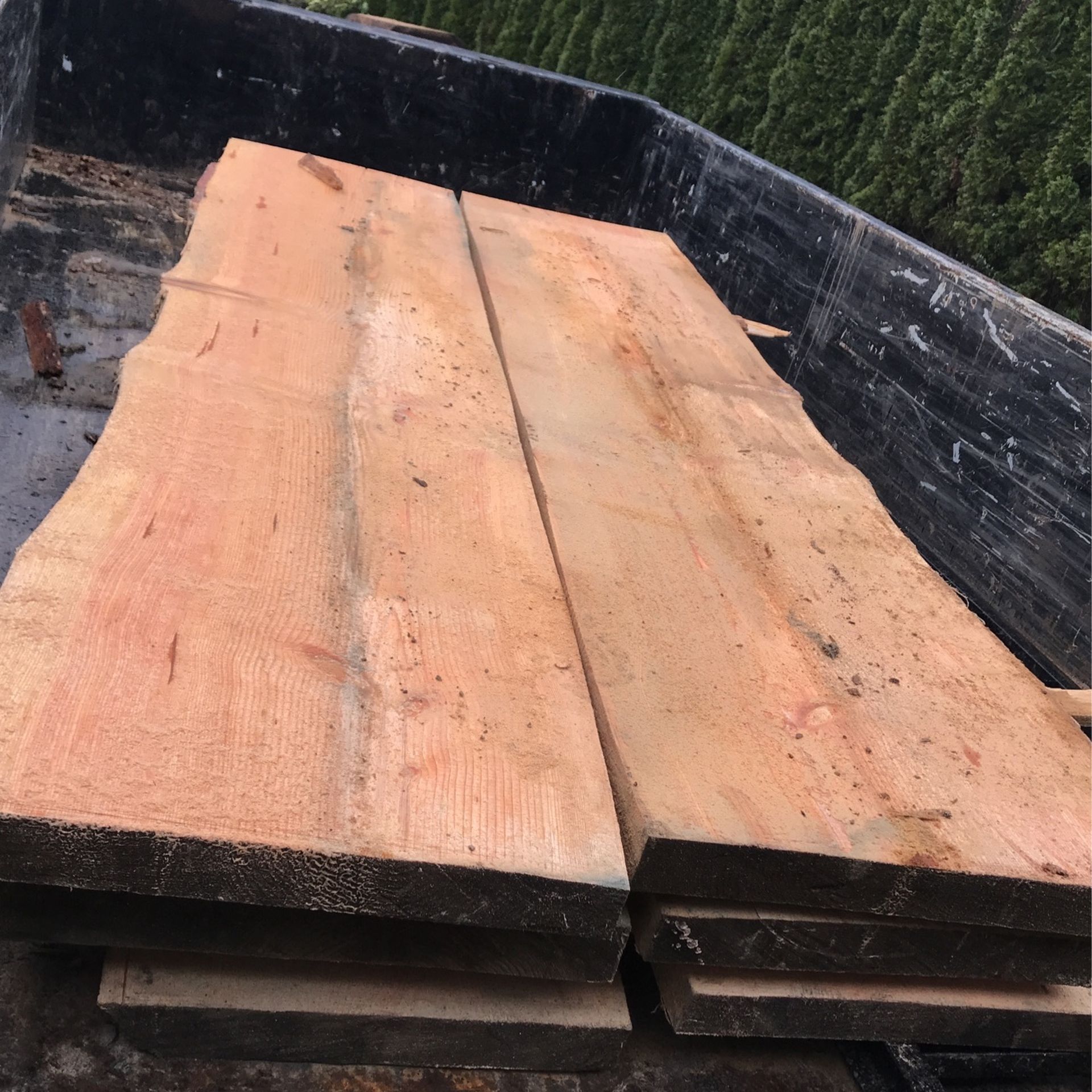 Overall width 2 pieces 45-50” x 8 ft long x 2.75” thick. I can finish out for you also and do wood or metal base for your table.