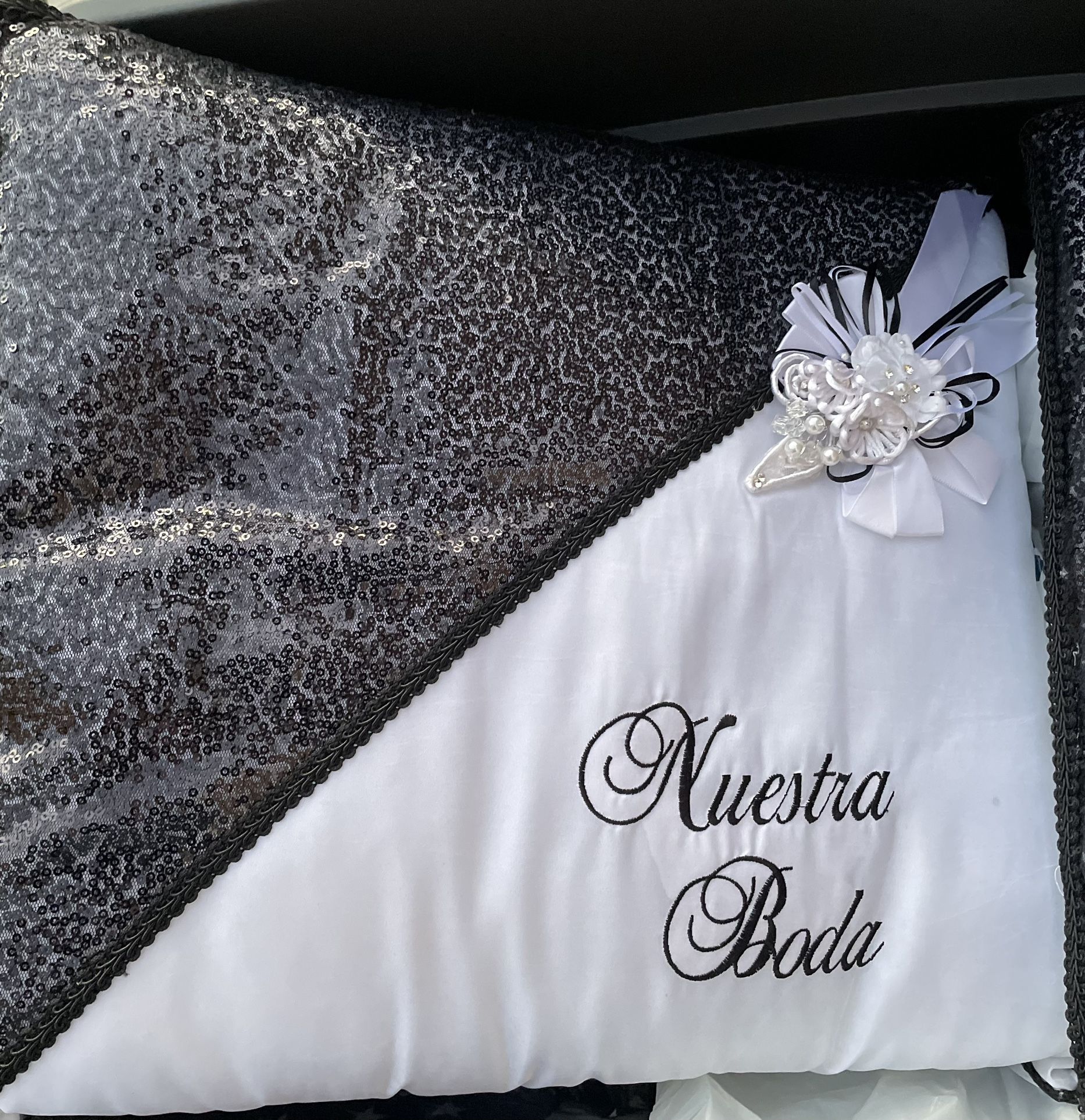 Black and white Kneeling and ring pillows