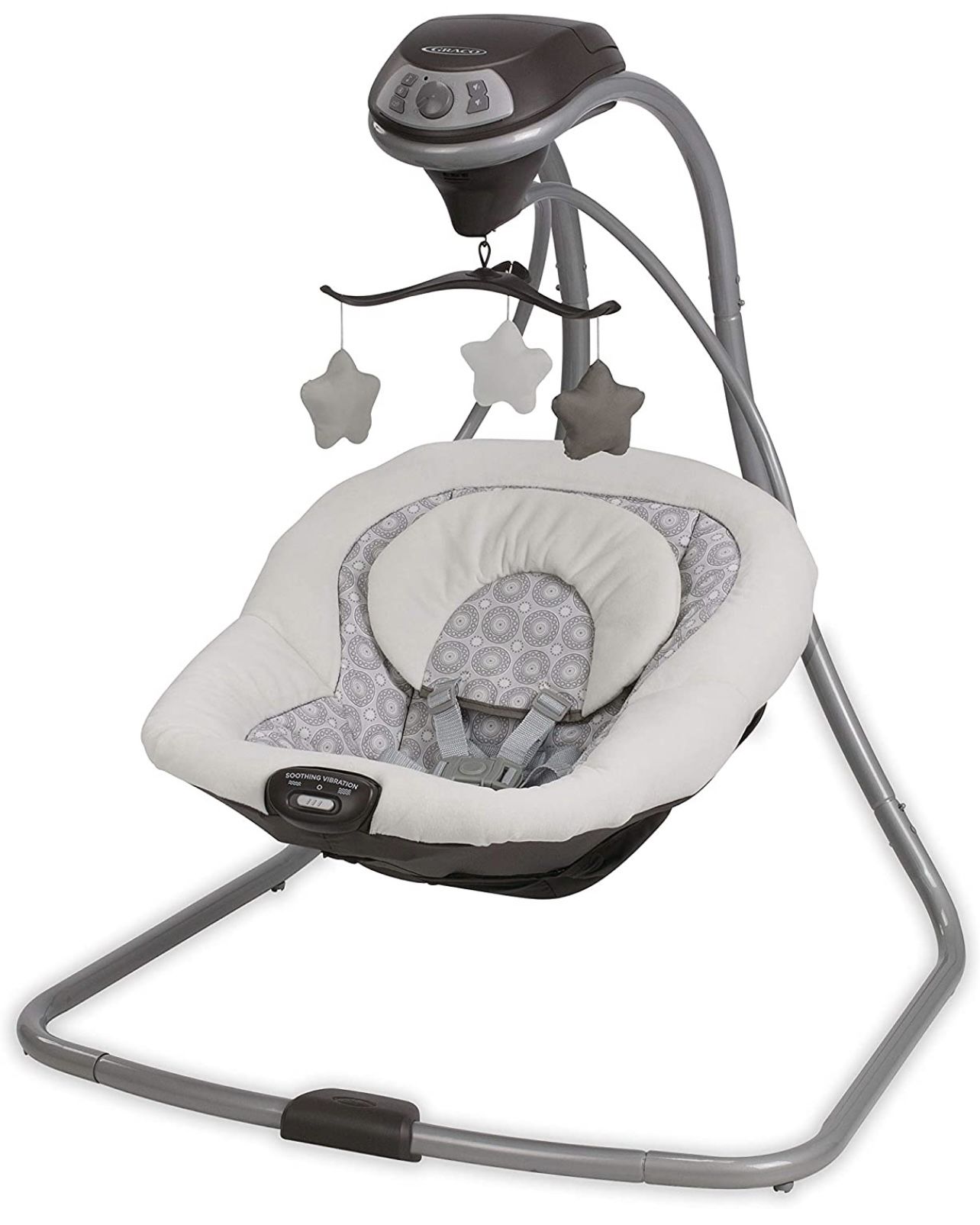 Adjustable swing speeds, Music, Nature sounds, Portable, Vibration
