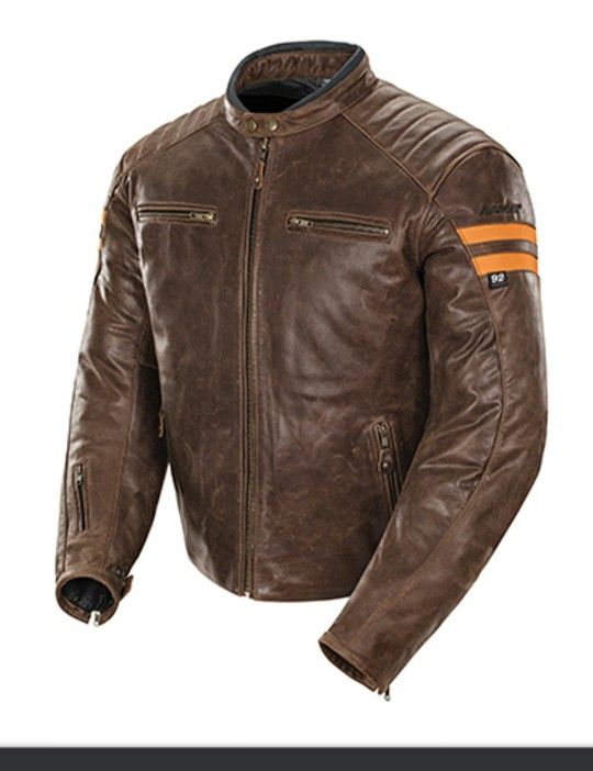 • Top stitched 1.0 to 1.2mm drum dyed cowhide, specifically tailored for a relaxed fit • Pockets for optional armor at the shoulders, elbows & back • Zip-in quilted full sleeve liner • 2 inside utility pockets • 4 outside pockets • Adjustable neoprene-lined mandarin collar • Adjustable waist and cuffs • 1.5" Storm flap at main zipper • YKK zippers through-out • Subtle tone on tone badging • Ample reflective striping