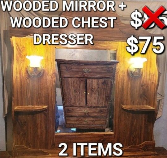 USED GOOD CONDITION WHICH IS WHY THEY'RE PRICED ACCORDINGLY‼️ PRICED TO SELL‼️ DO NOT MESSAGE ME IF YOU'RE NOT GENUINELY INTERESTED‼️ MY LOWEST IS $65 FOR BOTH‼️ Used Wooded chest dresser+Wooded Mirror Dresser Topper for sale, looking to get both gone ASAP for $85. All dimensions are listed below. Chest Dresser Deminsions 4 + 1/2 feet in height 1+1/2 feet in width 2 feet 10 inches in length Wooded Mirror Dresser Topper Deminsions 3 feet 11 inches tall 3 feet 11 inches wide You will have to pick it up from the given location! If I have to deliver it will be $25 extra in delivery fee!