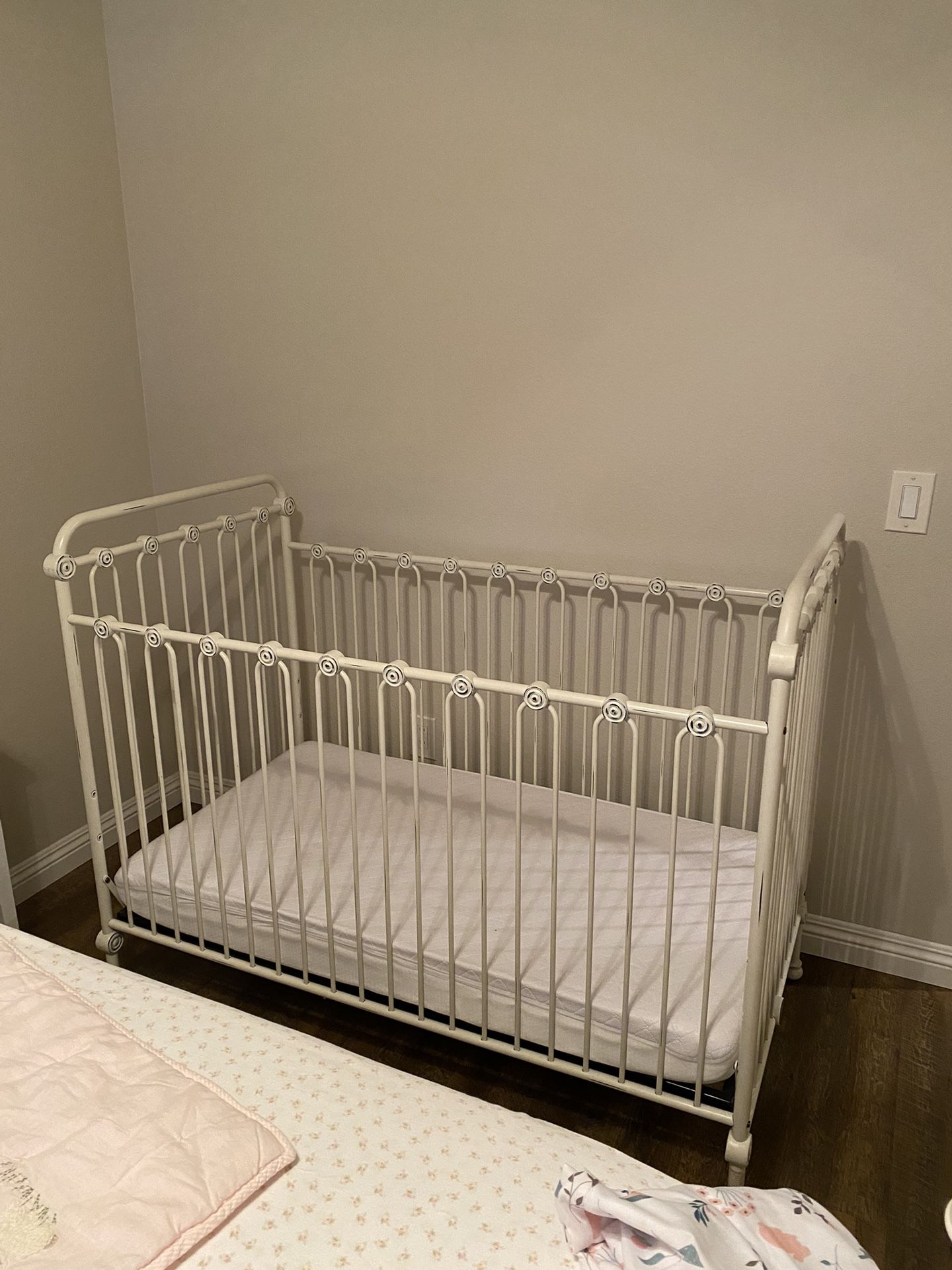 This crib is beautiful. Gently used. Comes from a smoke-free pet FREE environment. The crib can easily be painted another color. Including brand, new mattress and mattress pad cover. The mattress pad cover is waterproof. Pick up only. If you’re really interested, make me an offer. Thank you.