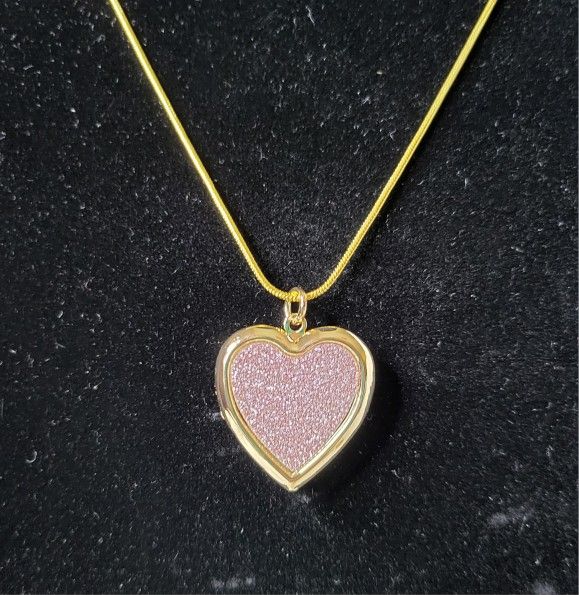 14k Gold Plated Heart w/Pink Crystals Locket Necklace